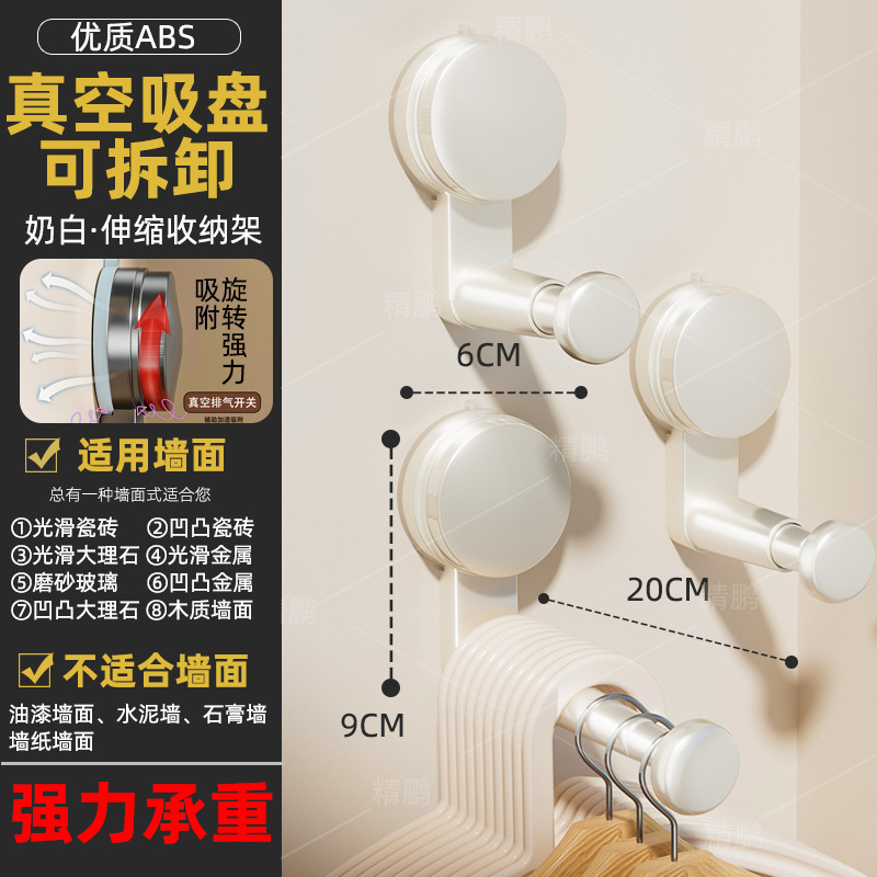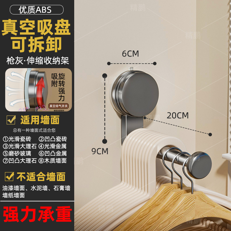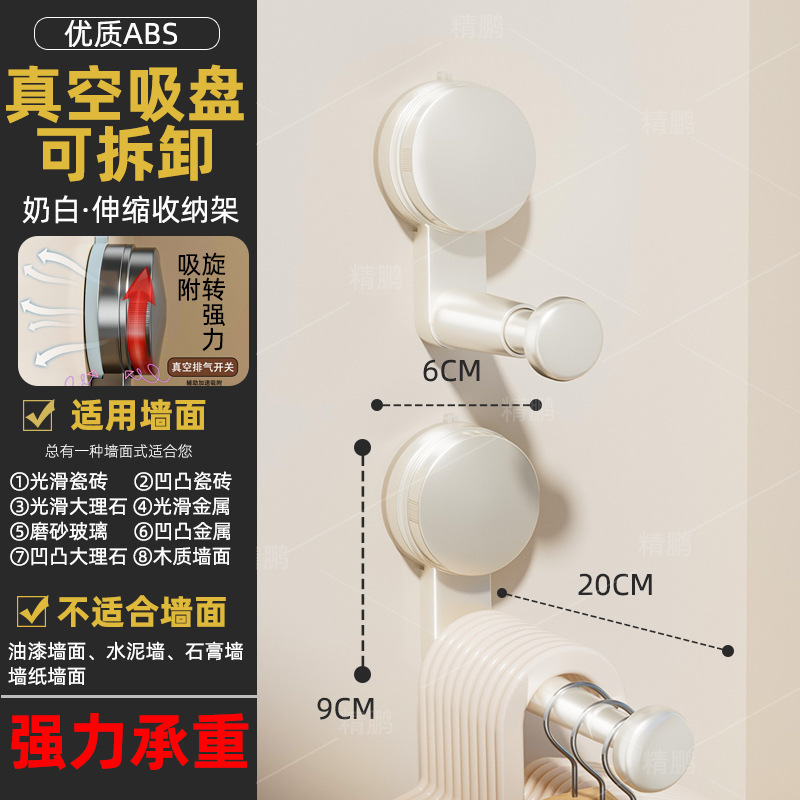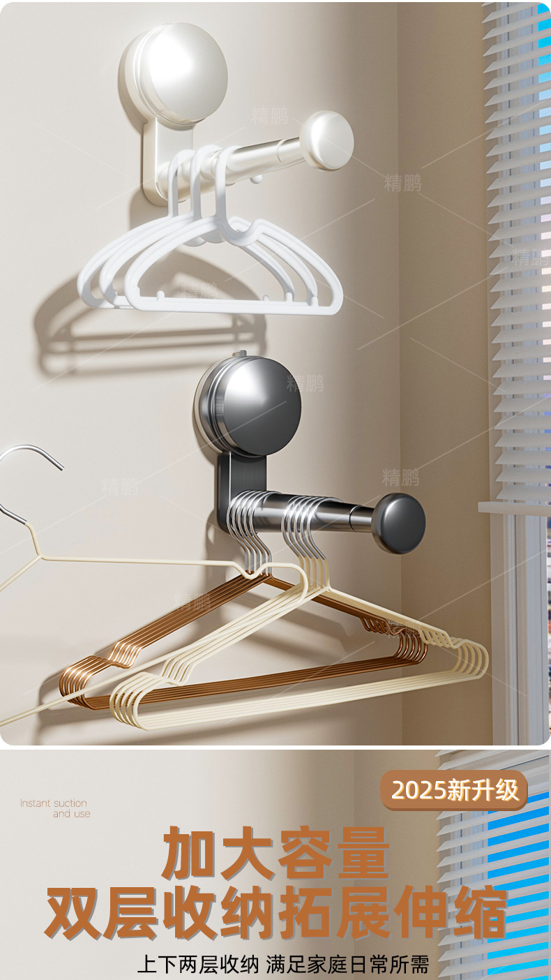 吸盘衣架收纳神器家用阳台壁挂多功能伸缩挂架免打孔晾衣架置物架