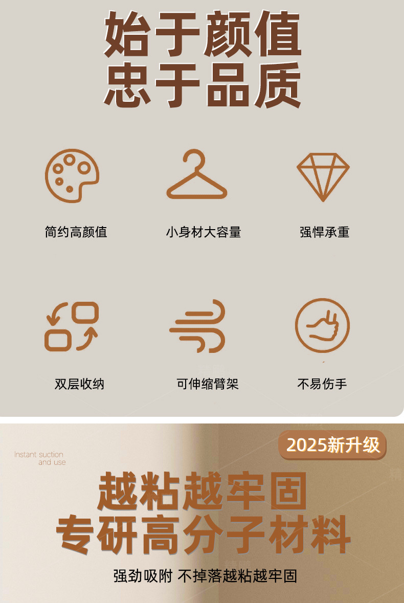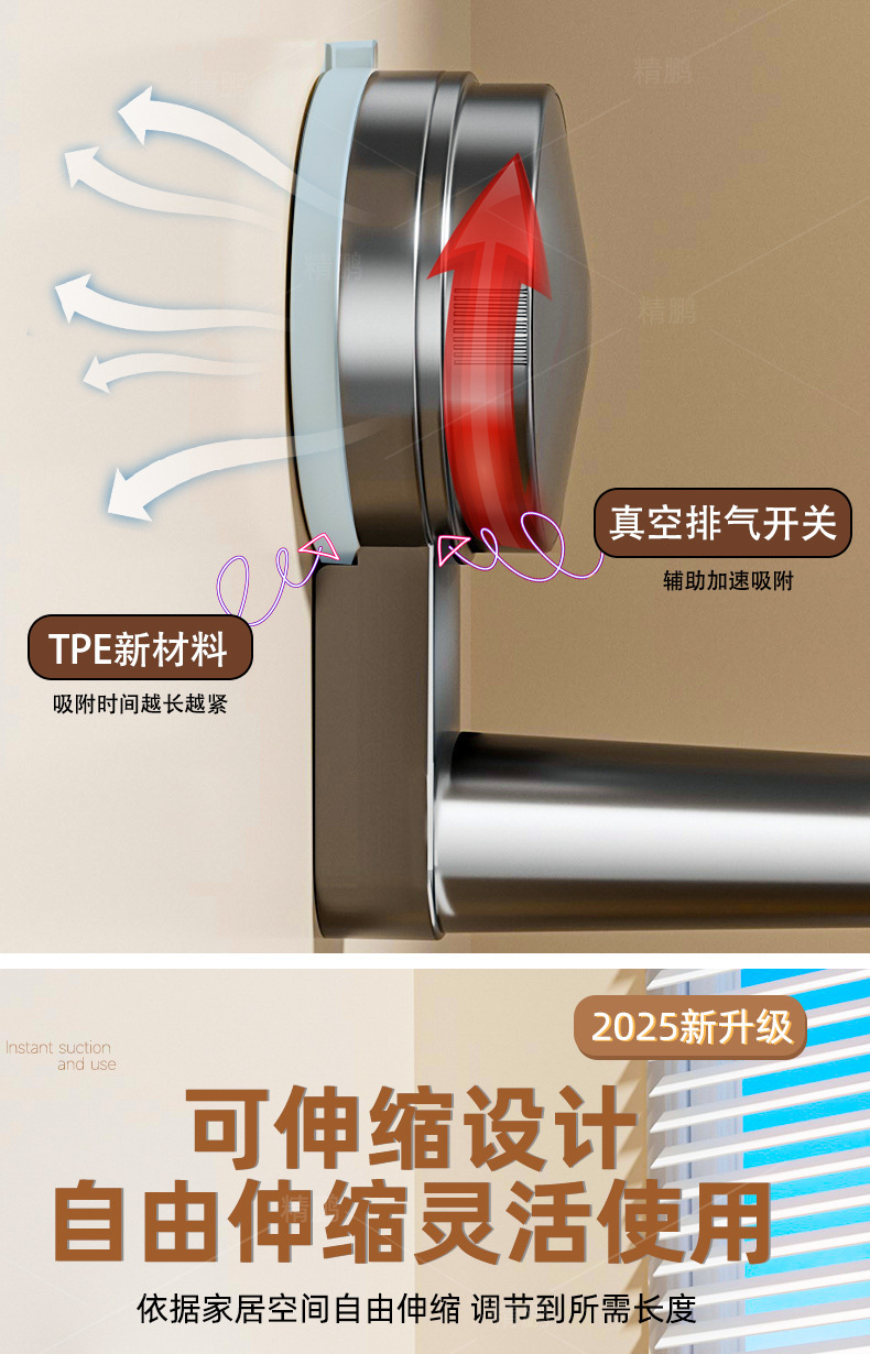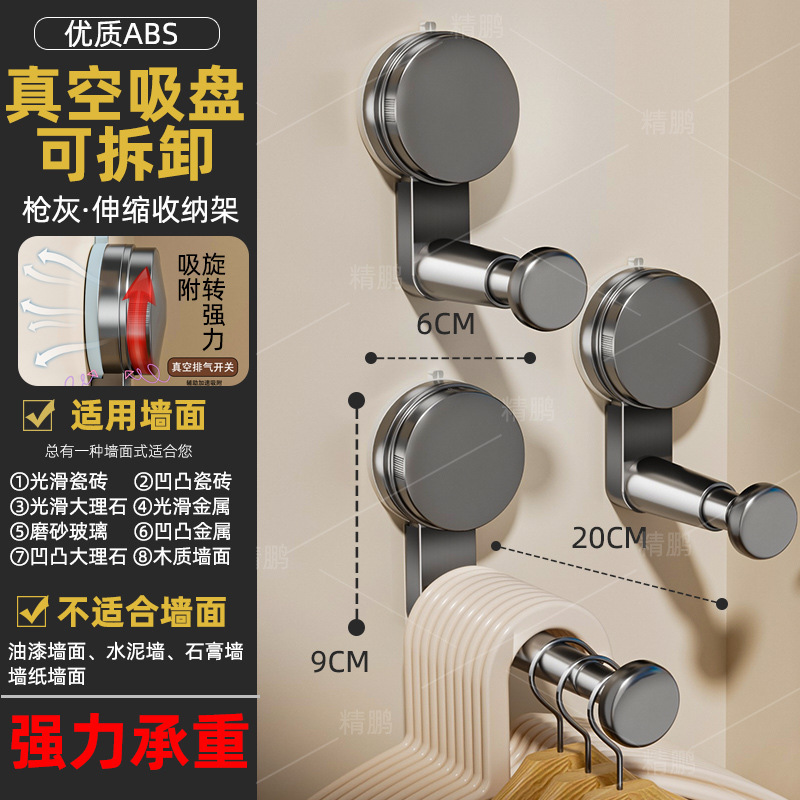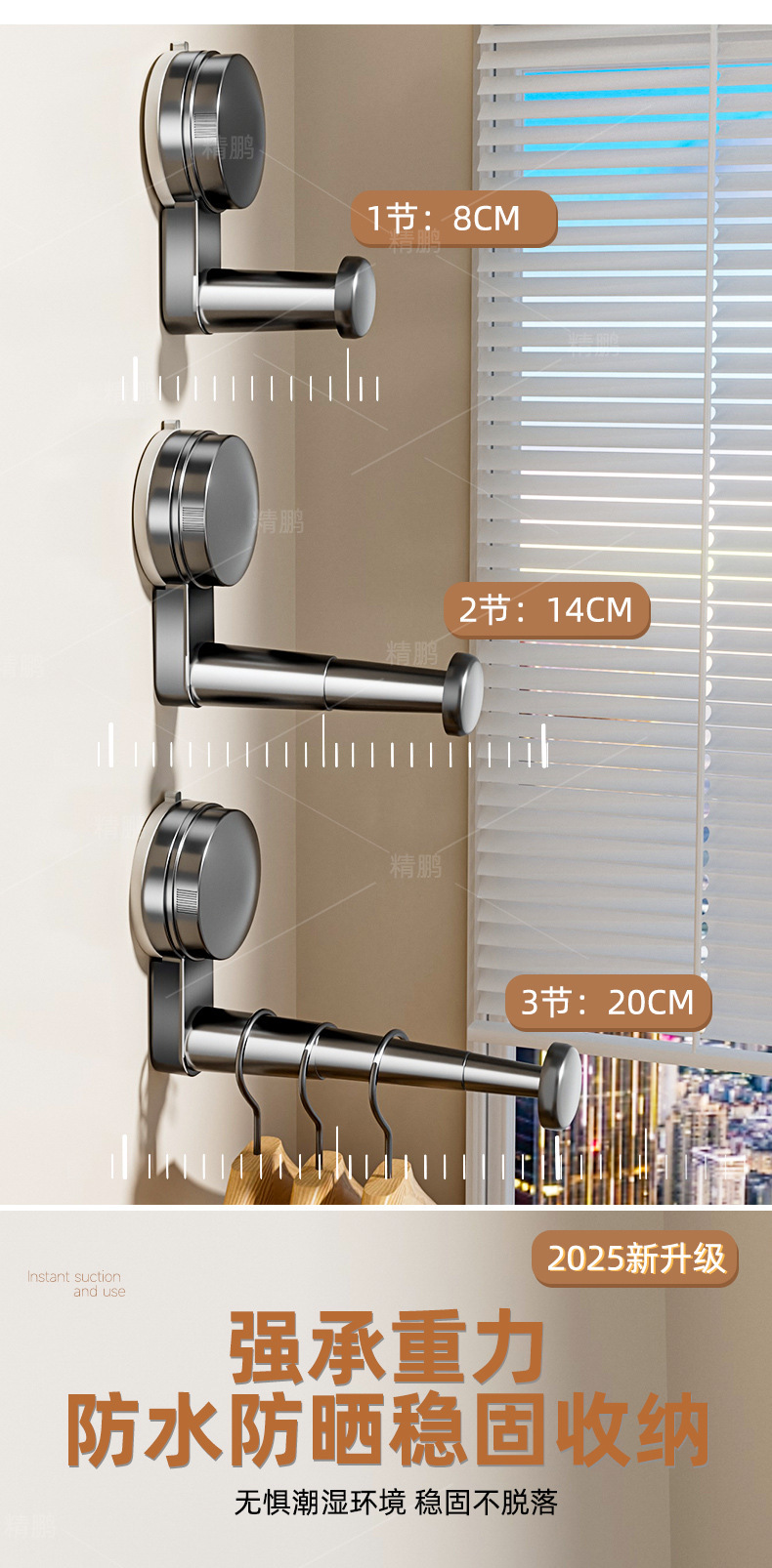 吸盘衣架收纳神器家用阳台壁挂多功能伸缩挂架免打孔晾衣架置物架