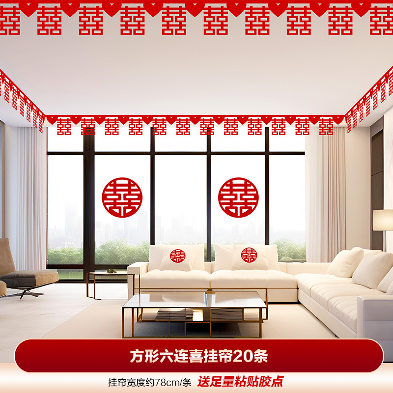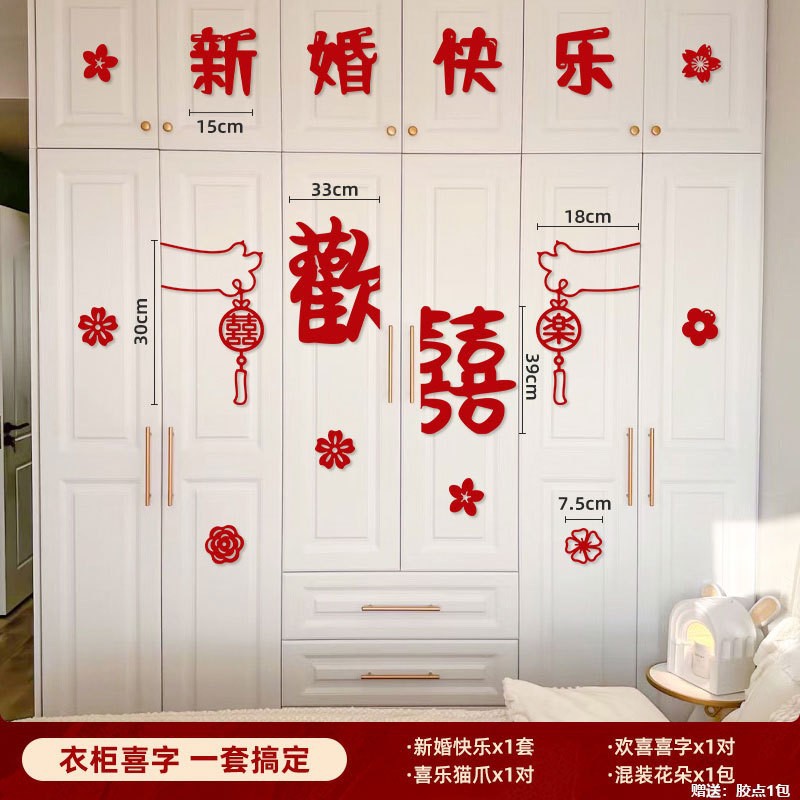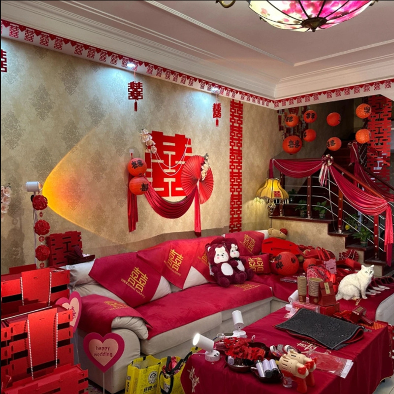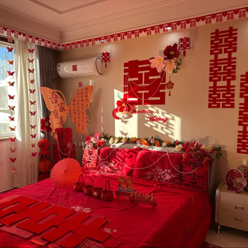 婚房全家福婚房客厅套装结婚布置男方女方婚礼卧室全屋装饰喜字贴