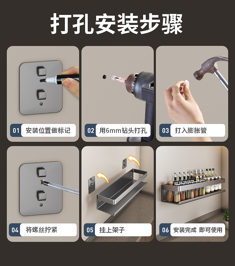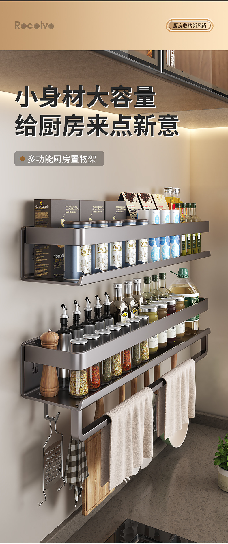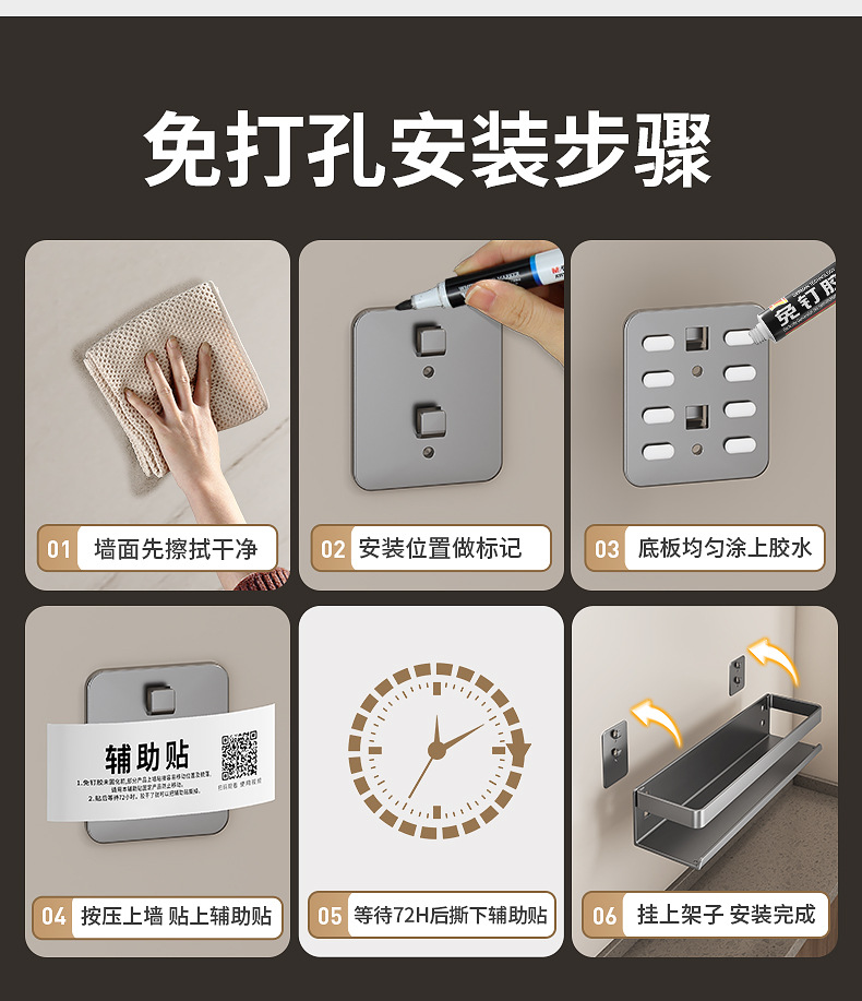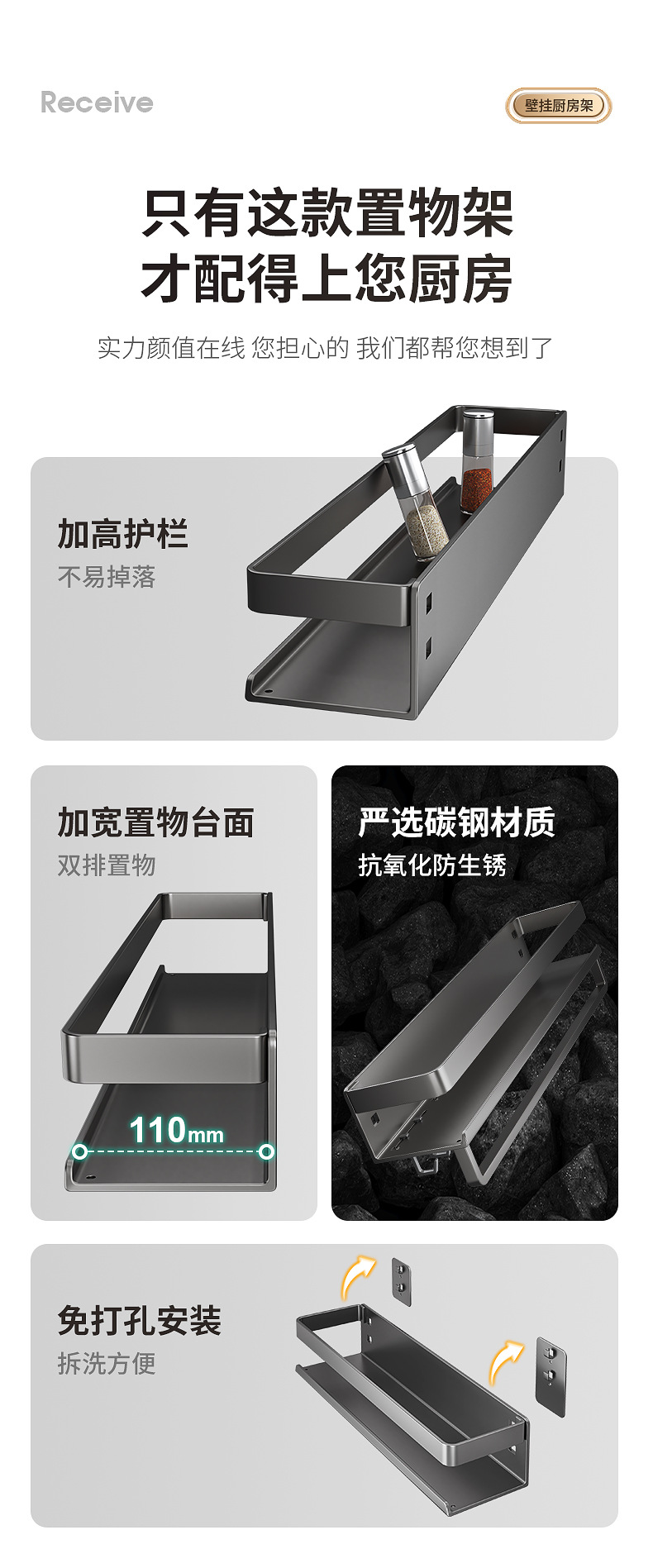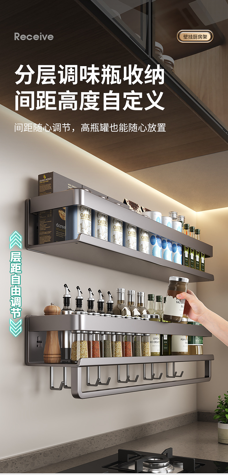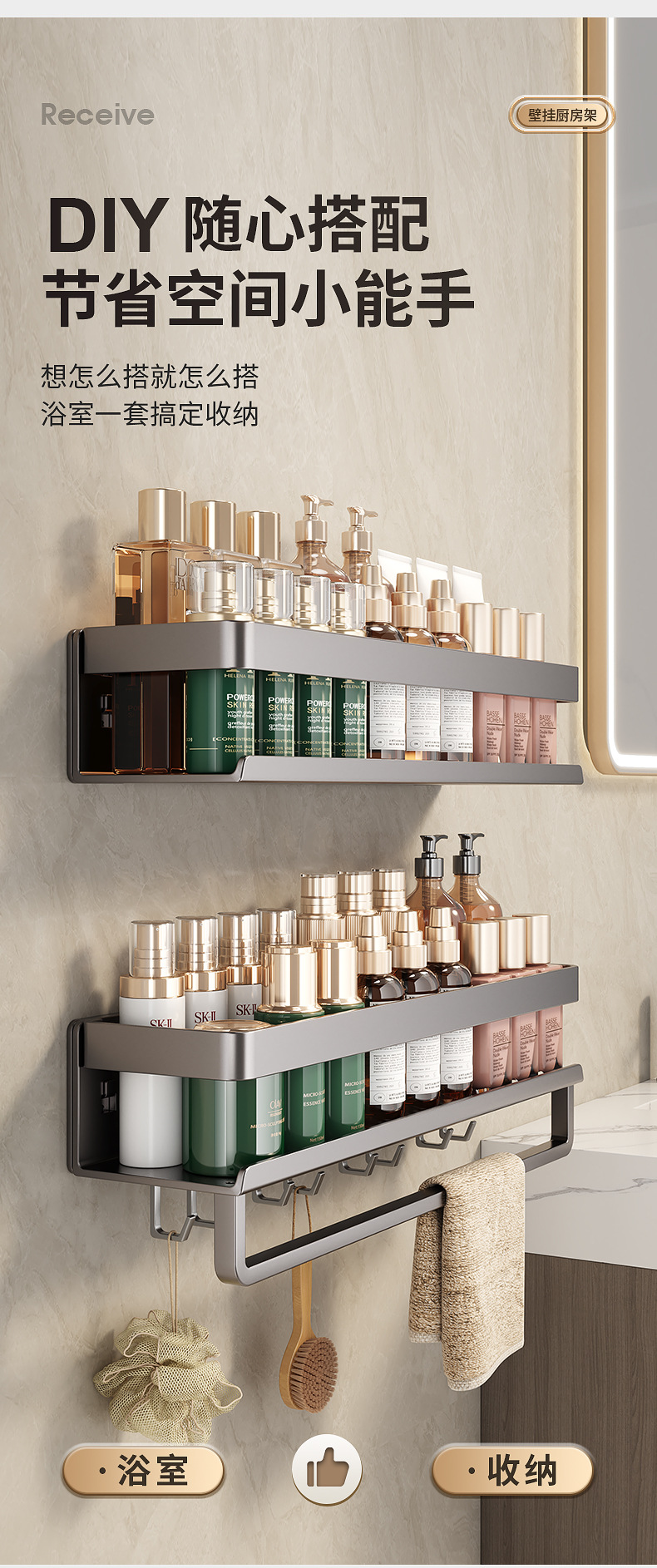 厨房置物架调料架挂墙免打孔浴室墙上壁挂式多功能家用收纳架
