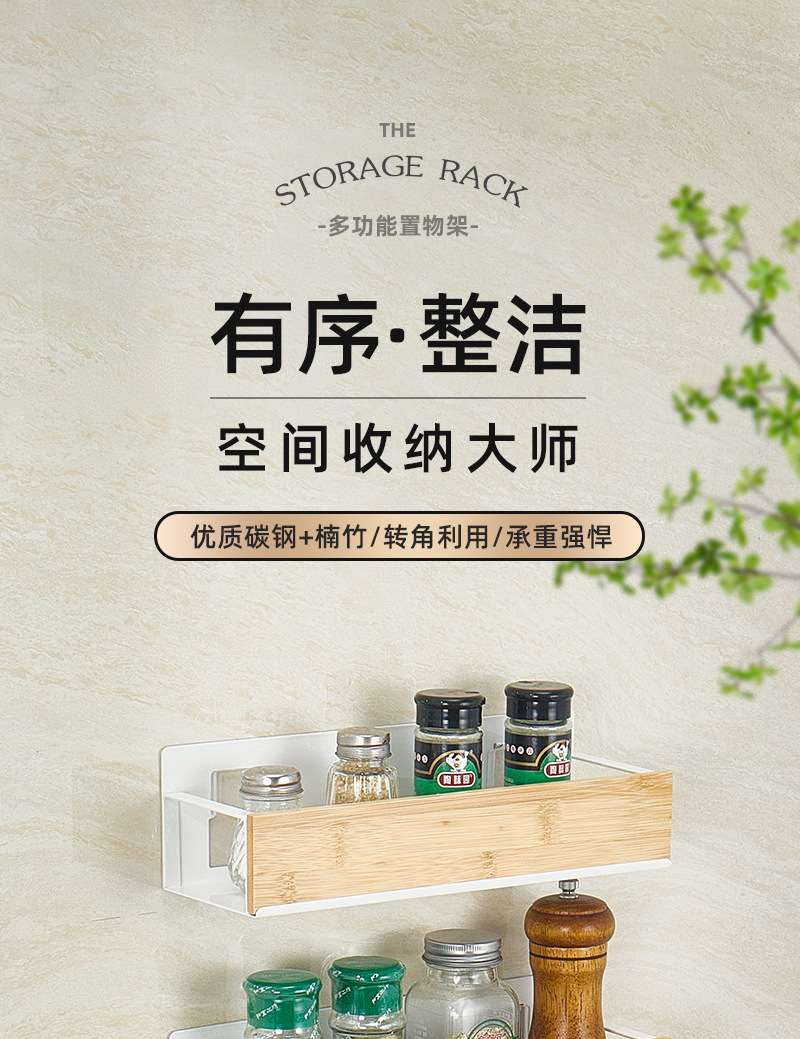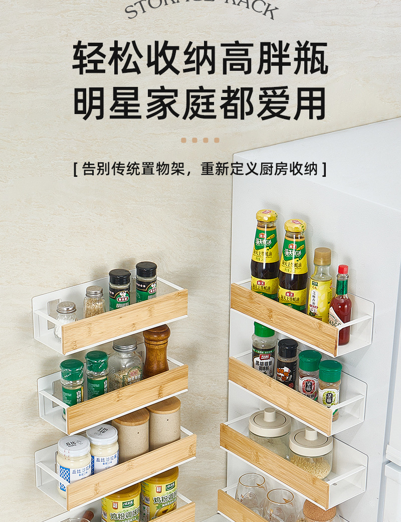 跨境磁吸置物架家用厨房冰箱侧面壁挂收纳架免打孔调料调味储物架