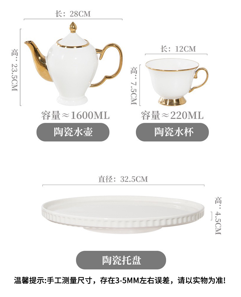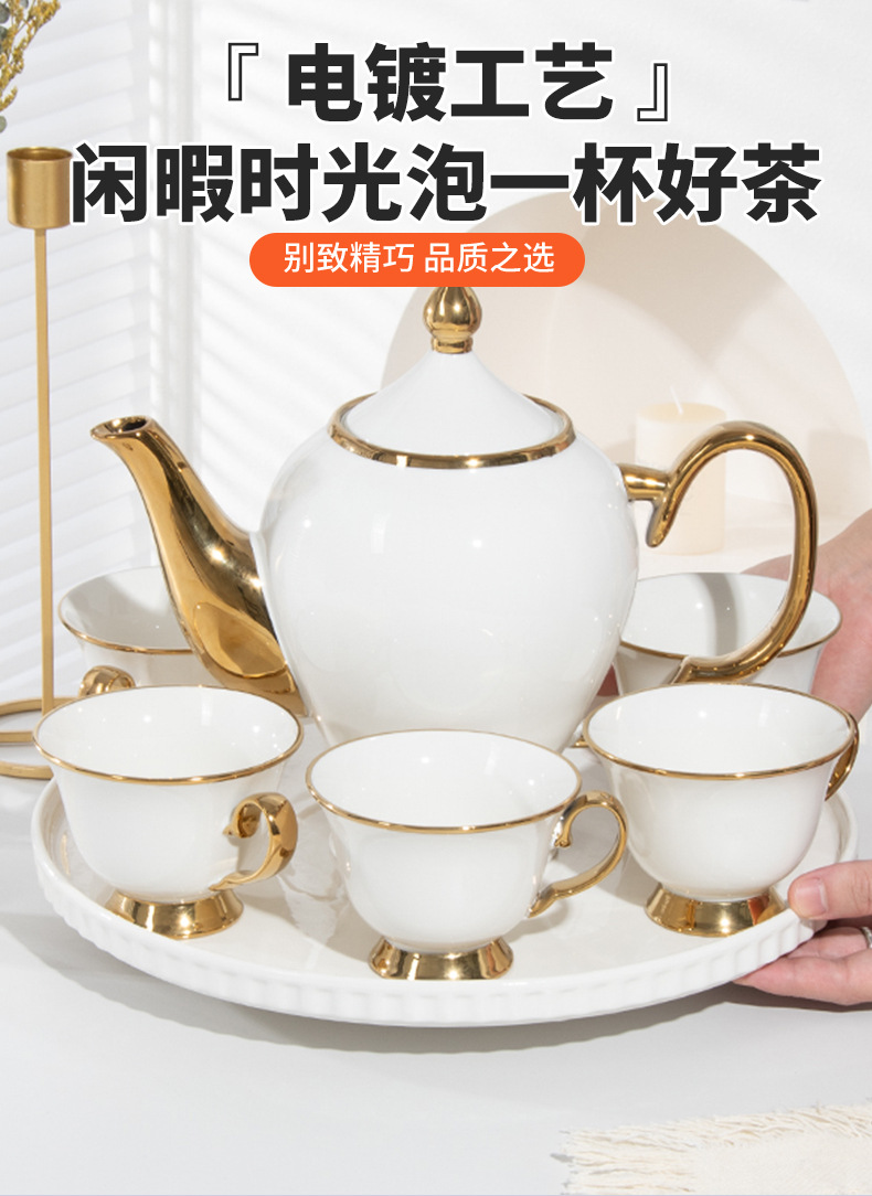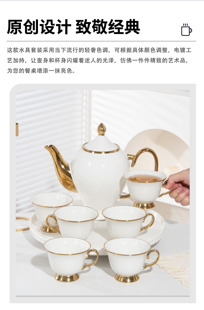 欧式轻奢陶瓷水具套装咖啡杯碟家用水杯待客高档英式下午茶具
