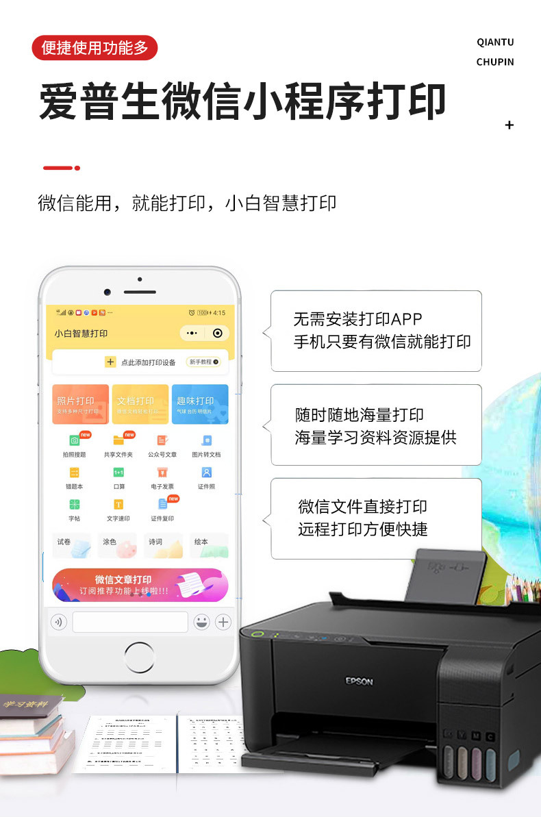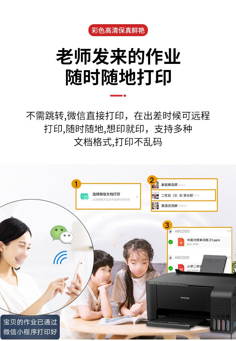 爱普生L3258/ L3218彩色喷墨照片打印机无线家用办公一体机L3256
