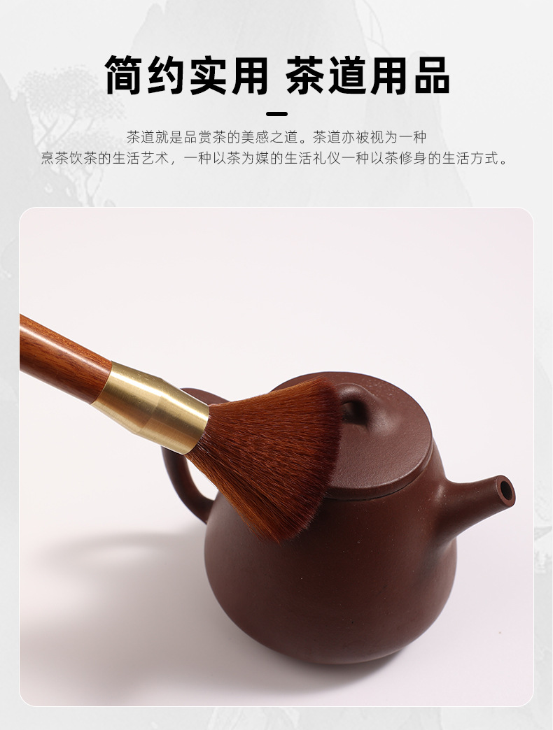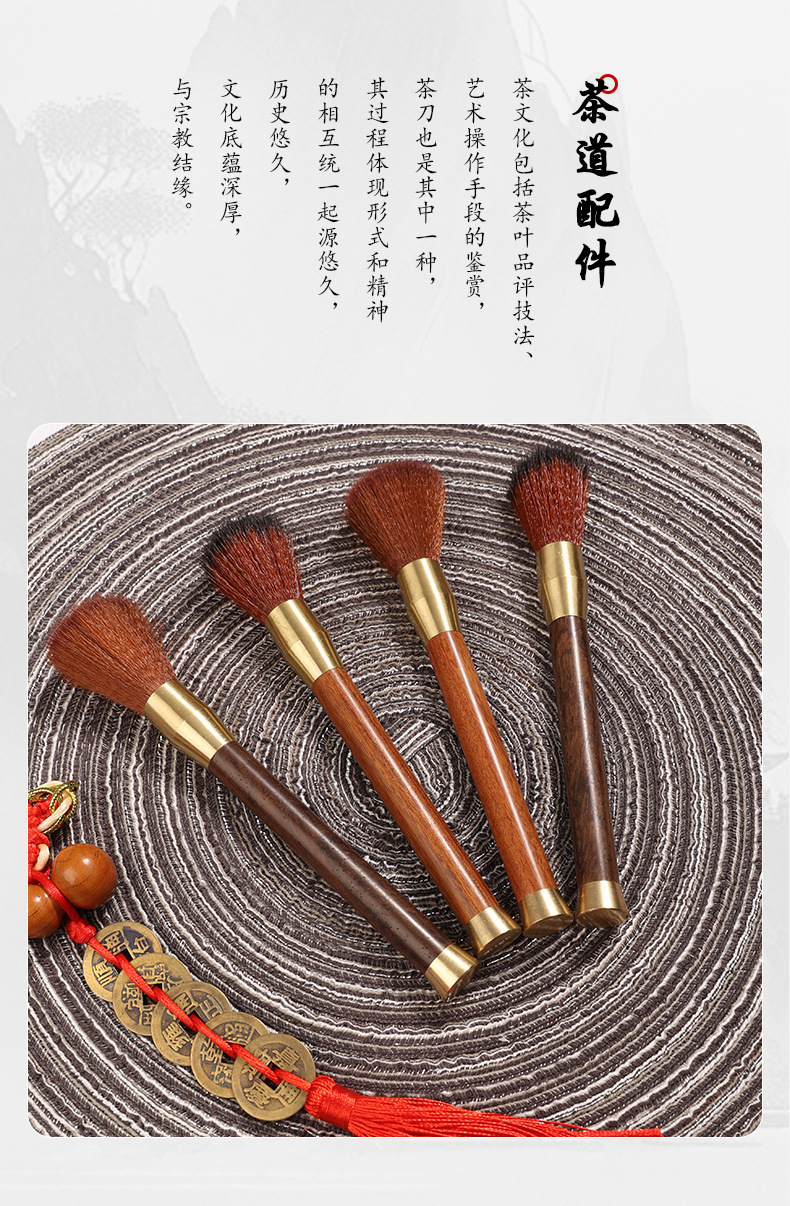 厂家批发茶道六君子铜木养壶笔清理茶盘功夫檀木茶毛刷扫咖啡刷