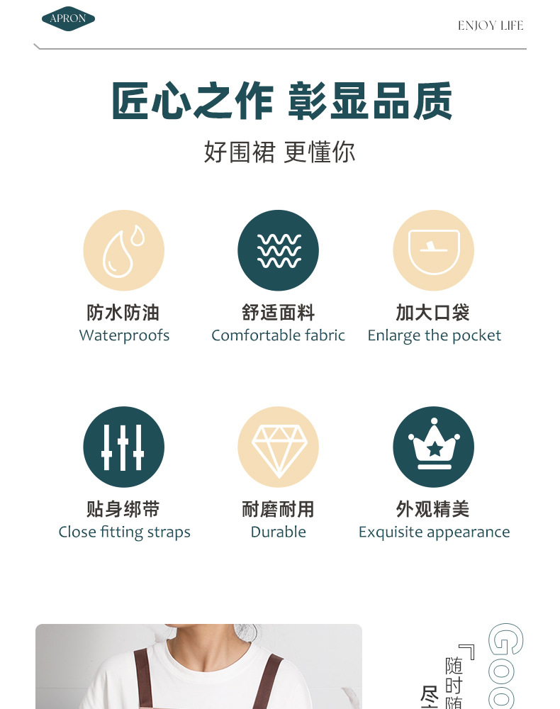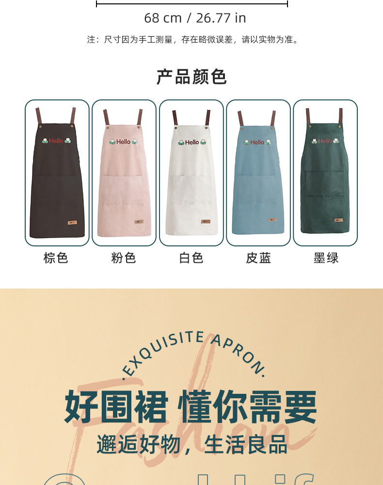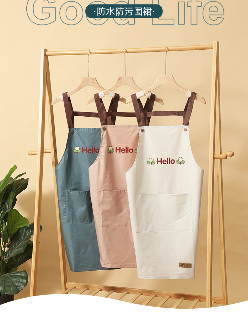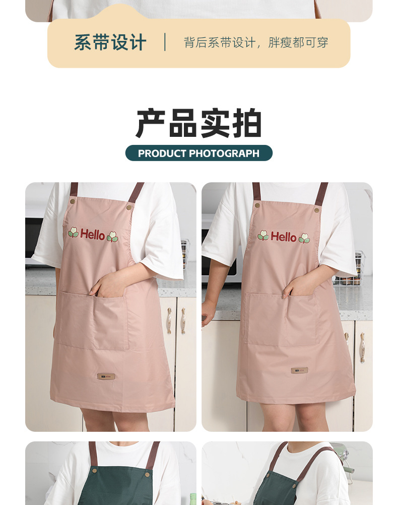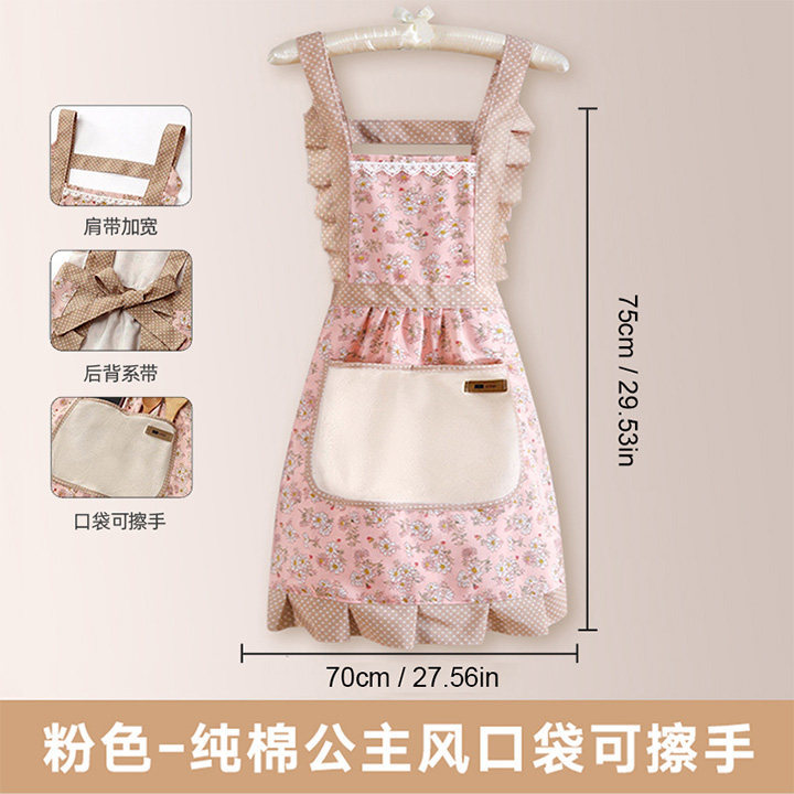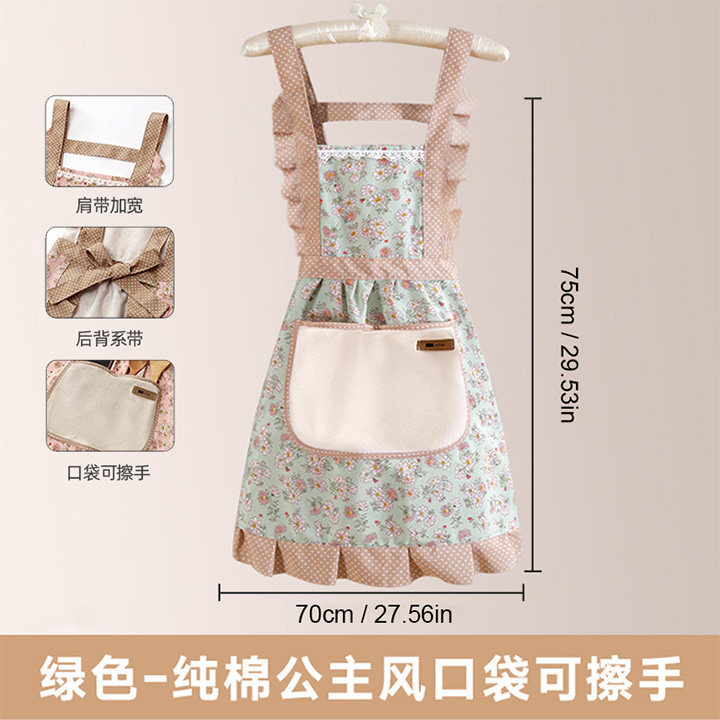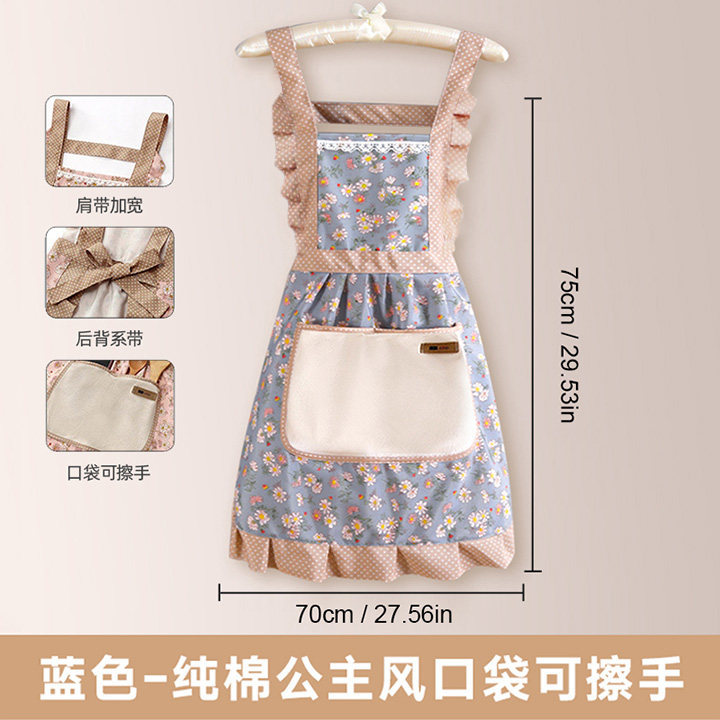 公主围裙女可擦手带背扣家用厨房防油布料餐饮专用围腰大口袋围兜