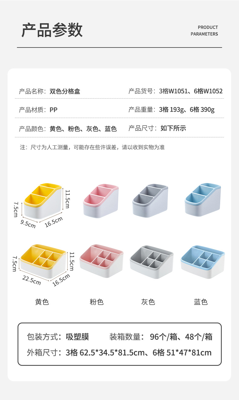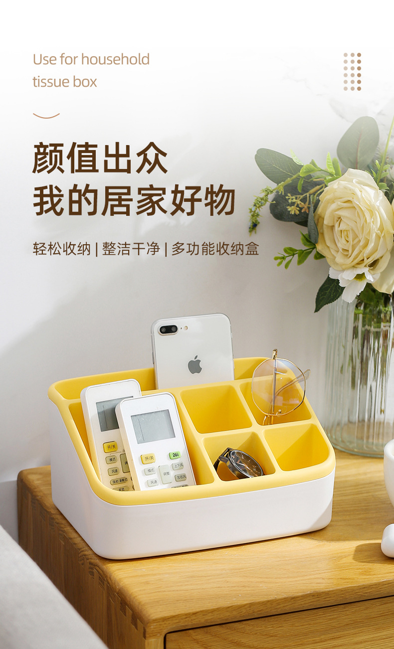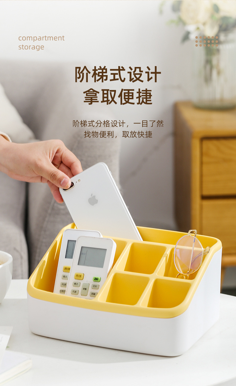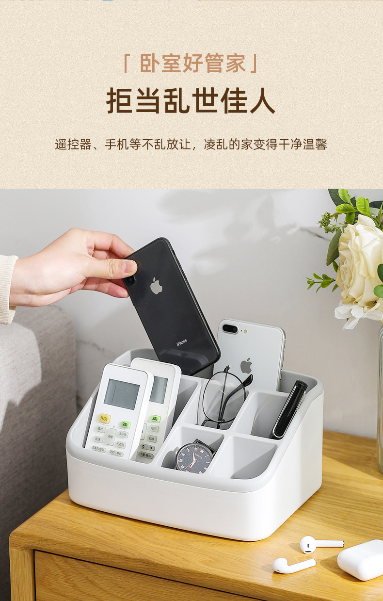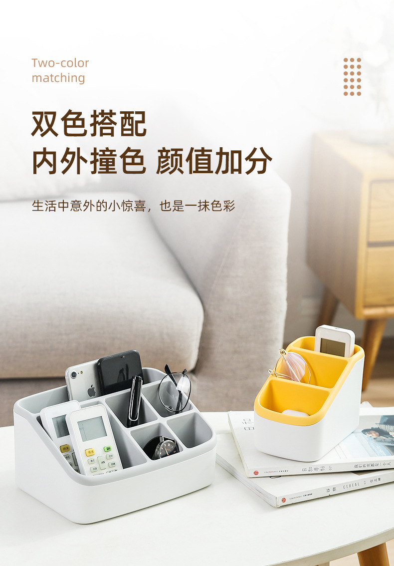 简约双色收纳盒 桌面遥控器分格盒办公室周边杂物电脑整理大盒子