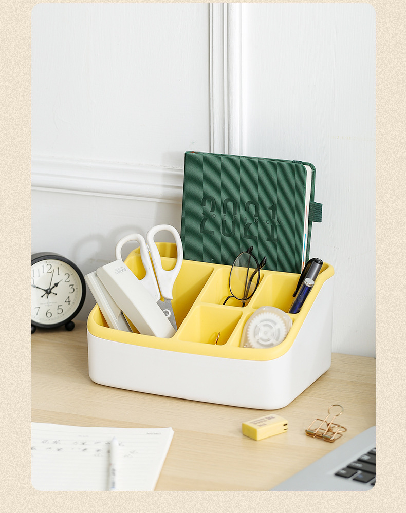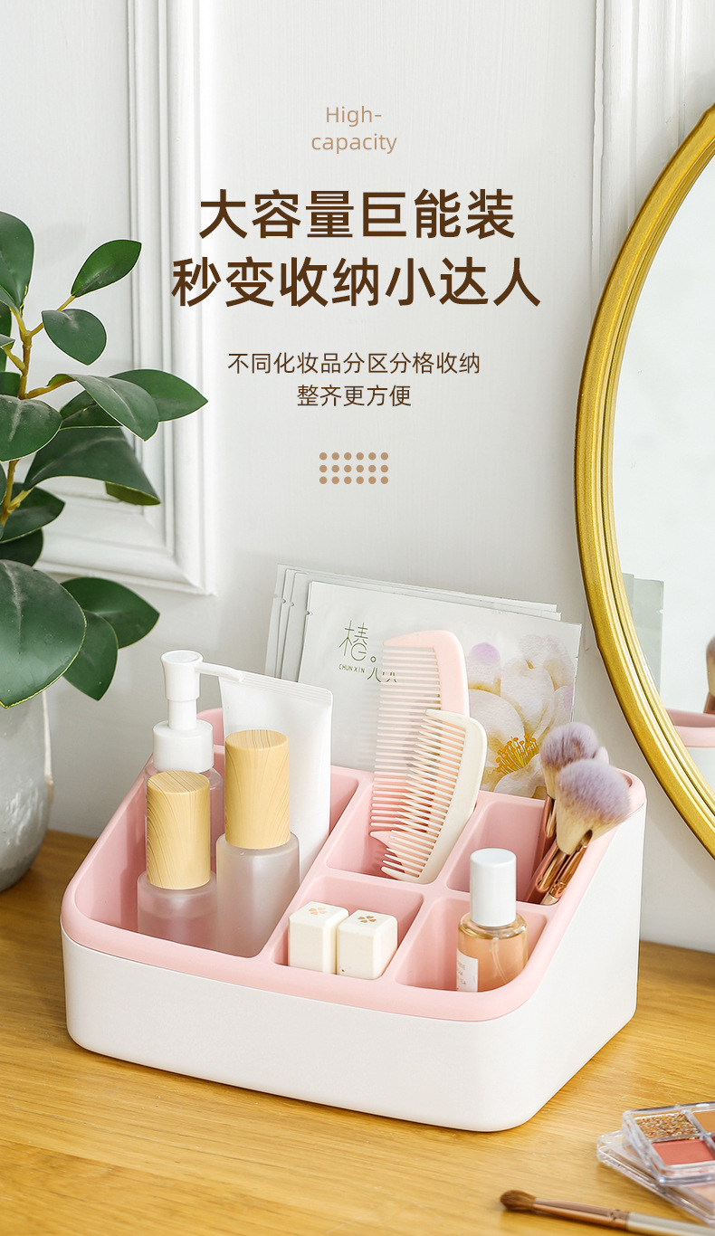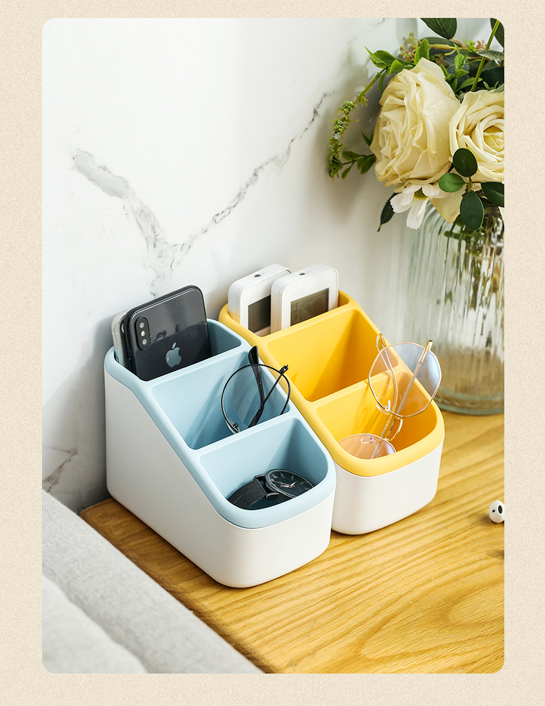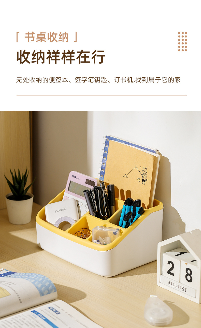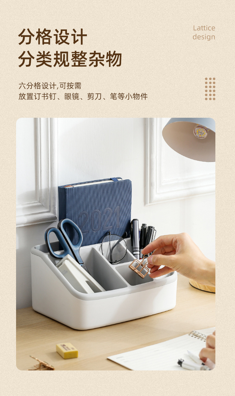 简约双色收纳盒 桌面遥控器分格盒办公室周边杂物电脑整理大盒子