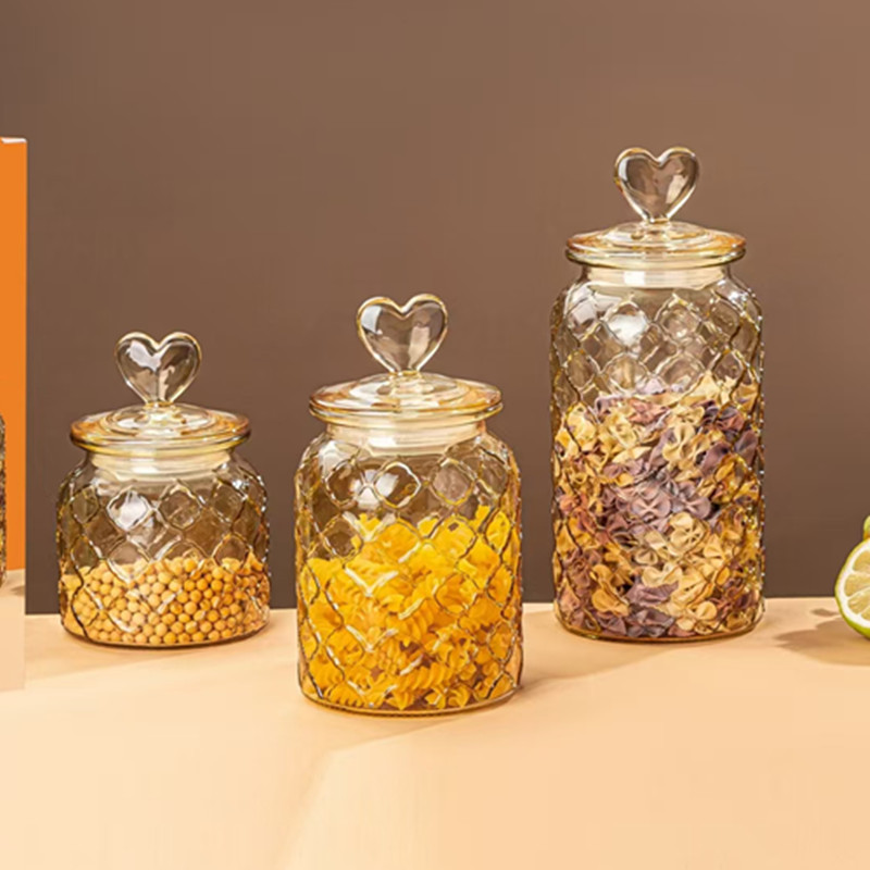 玻璃密封罐创意爱心储物罐透明琥珀色高颜值零食糖果杂粮收纳瓶