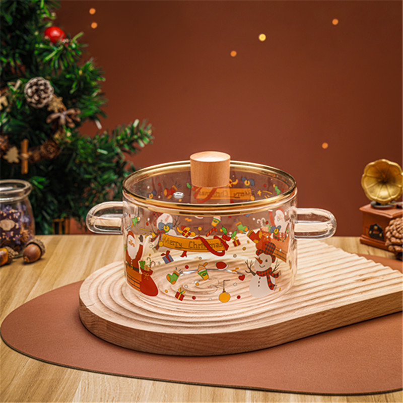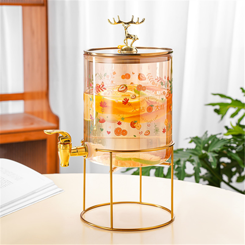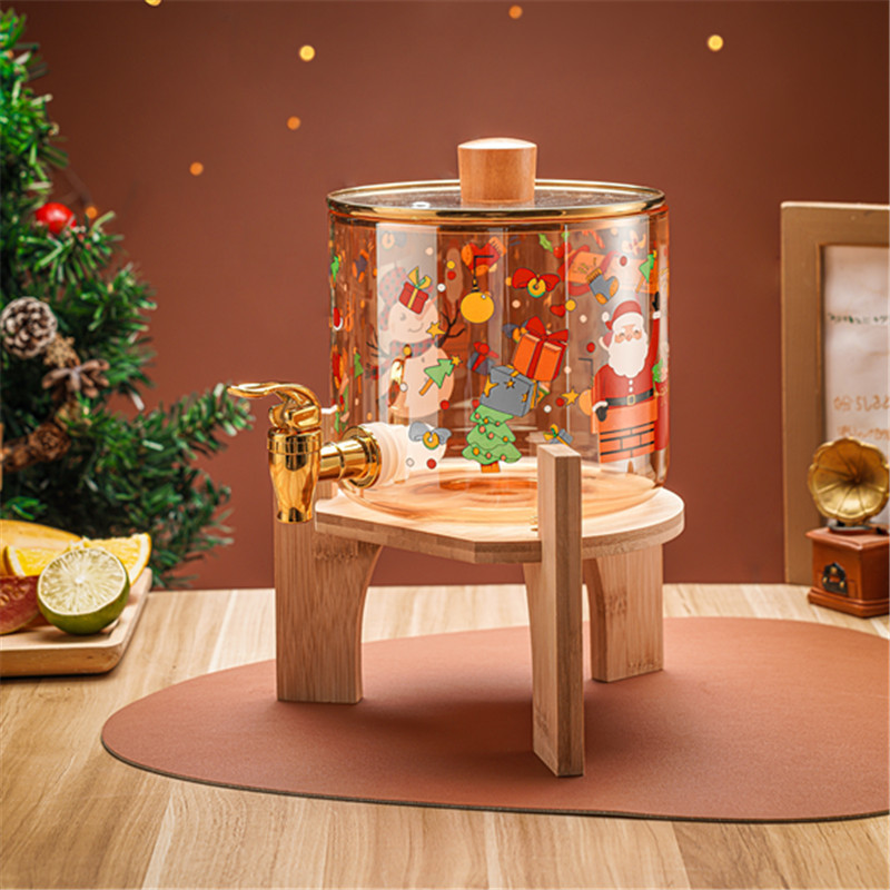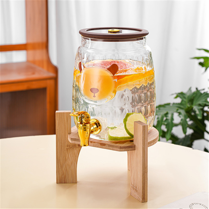 新品小熊酒桶双耳玻璃煲琥珀色大桔大利鹿头盖玻璃水桶竹木盖透明