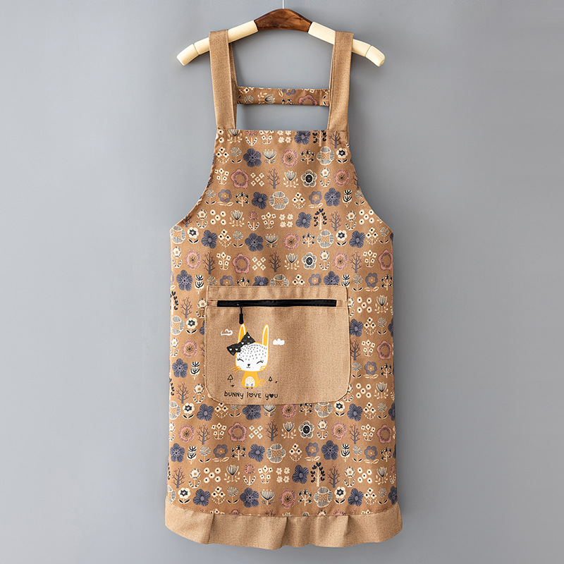 简约成人背带围裙春夏透气家居围腰女厨房做饭防油污工作服