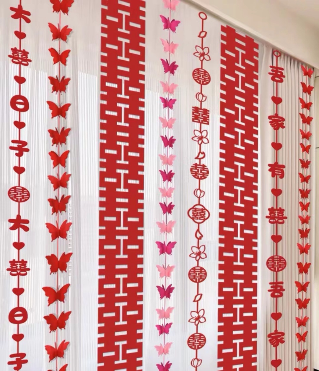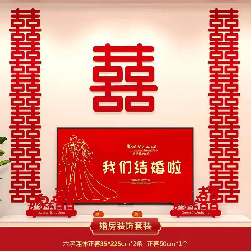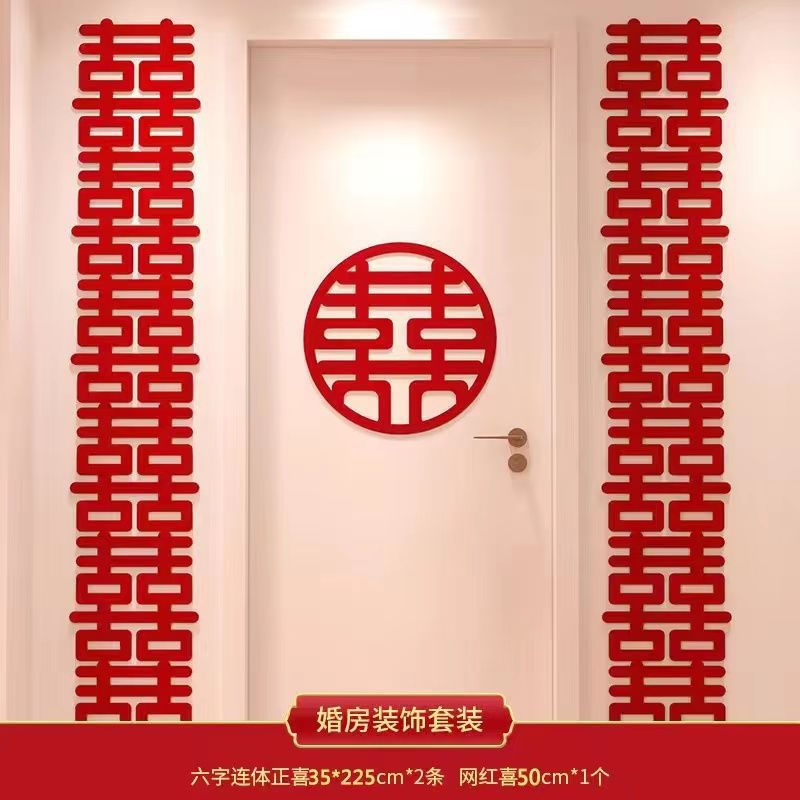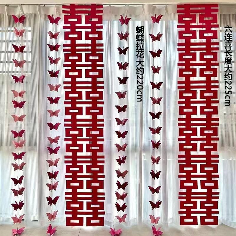 婚房布置长条喜字贴纸囍字套装男方女方蝴蝶拉花卧室客厅装饰结婚