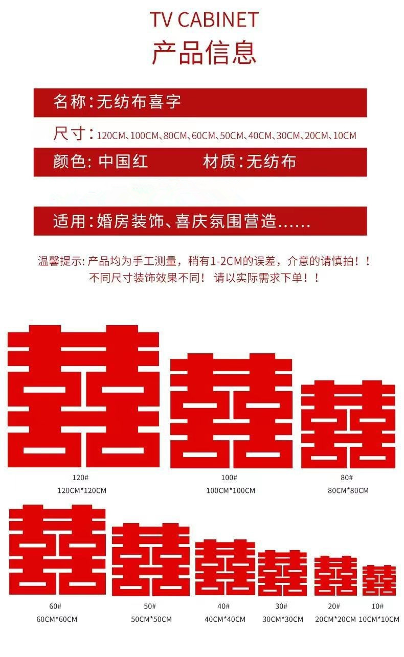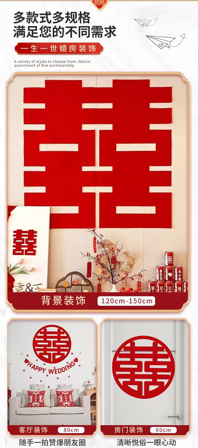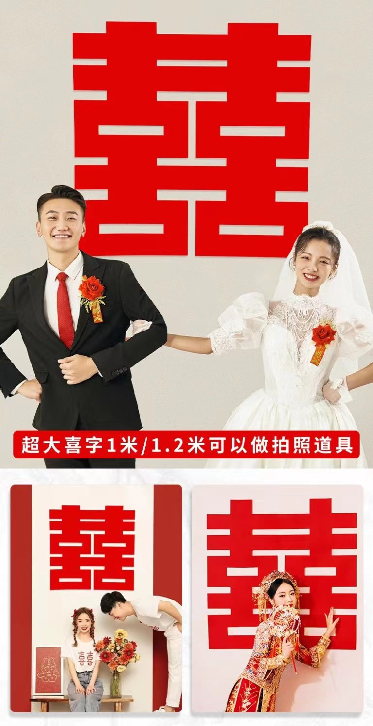 超大喜字结婚专用婚庆婚礼囍字装饰婚房布置套装无纺布喜字贴