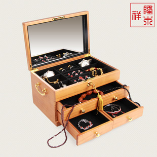 木质首饰盒带锁复古绒布首饰收纳盒手镯珠宝首饰盒 木盒加工定 做