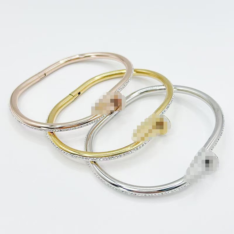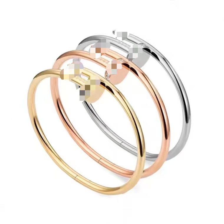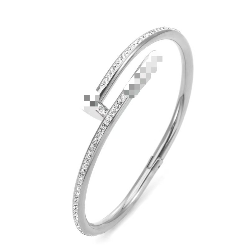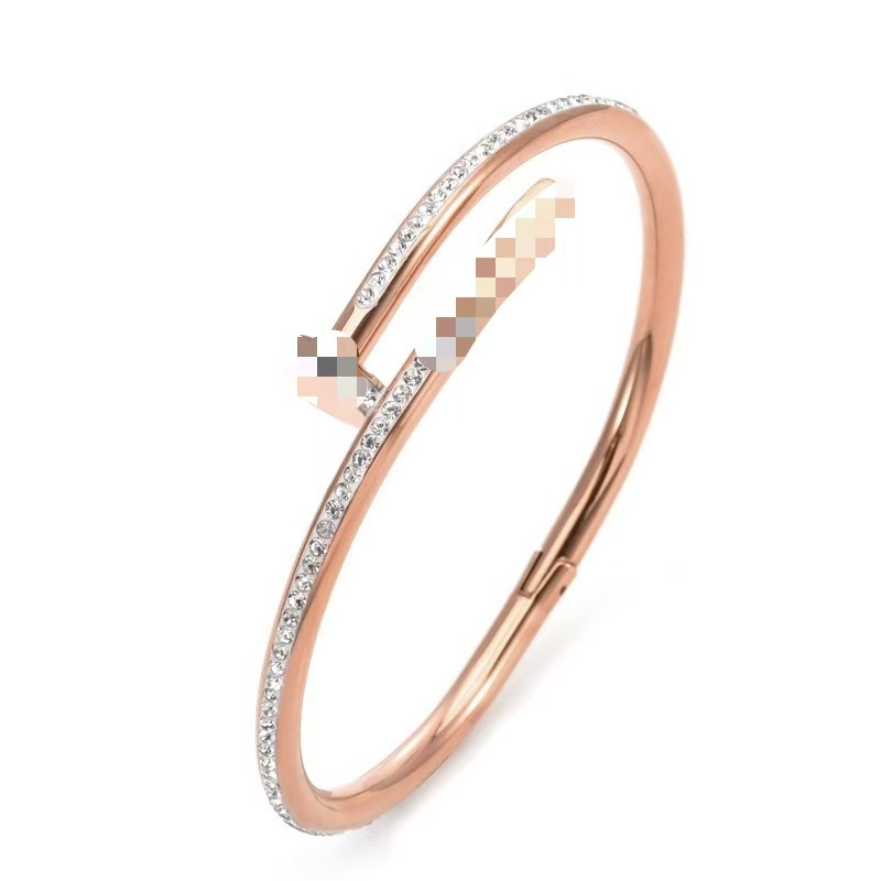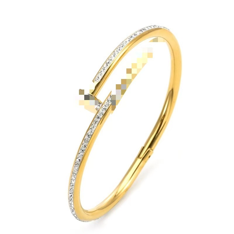 跨境卡家钛钢钉子手镯 18K金不掉色镶钻无钻开口手环奢华简约高级