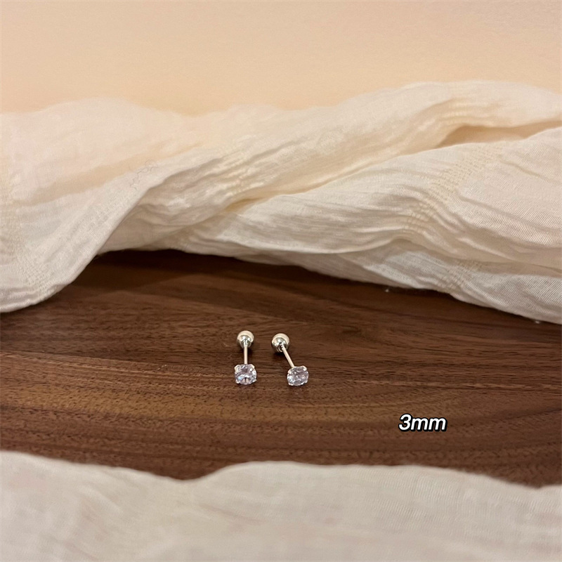 日韩超闪新款螺丝拧扣锆石耳钉套装设计感螺旋耳骨钉百搭耳饰