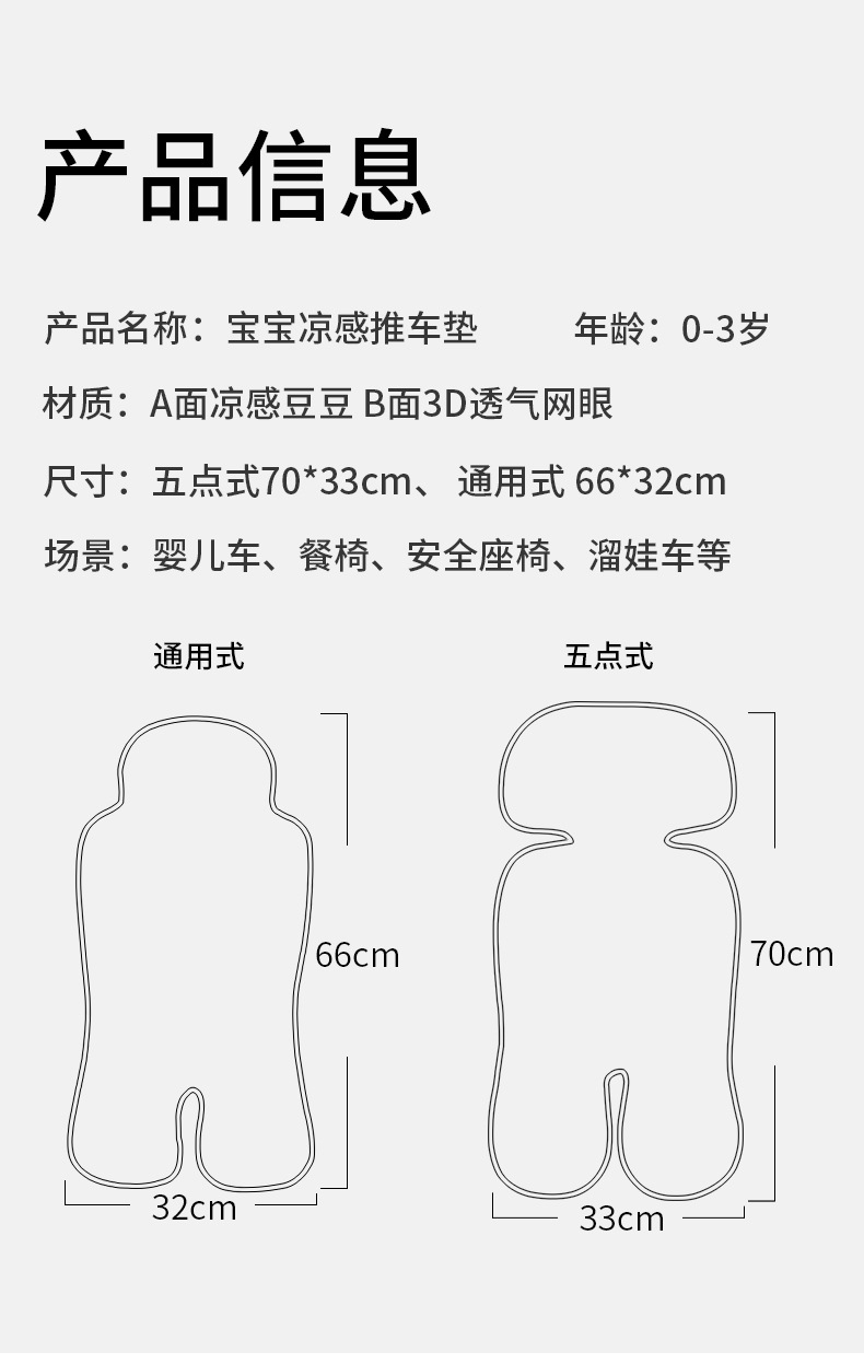 婴儿推车凉豆豆凉席坐垫冰丝通用安全座椅宝宝餐椅垫夏季遛娃神器