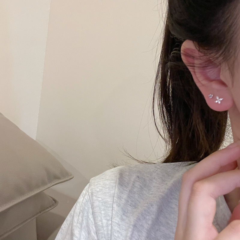新款极光焕彩爱心圆形耳钉三件套装透亮月光石精致小巧迷你耳饰女