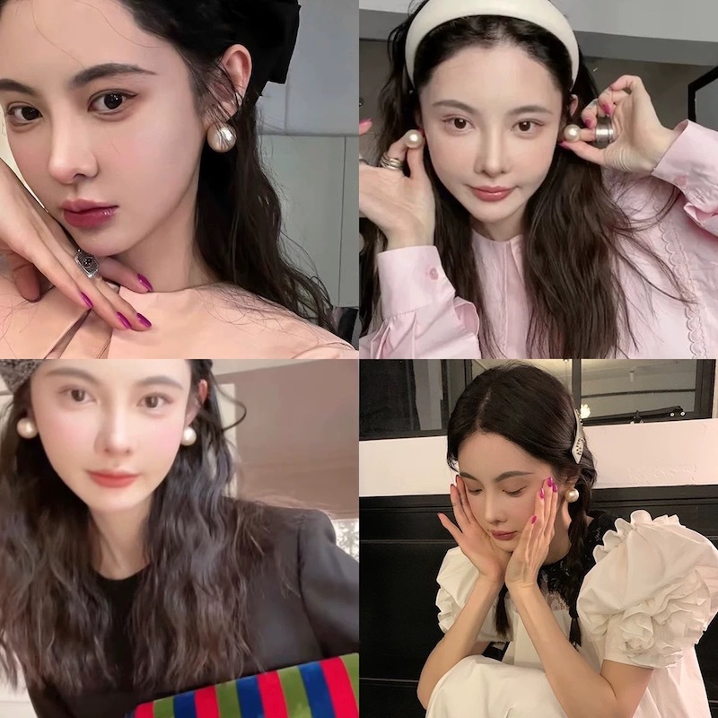 mona同款耳环棉花大珍珠复古气质耳钉轻奢高级感法式耳饰显脸小女