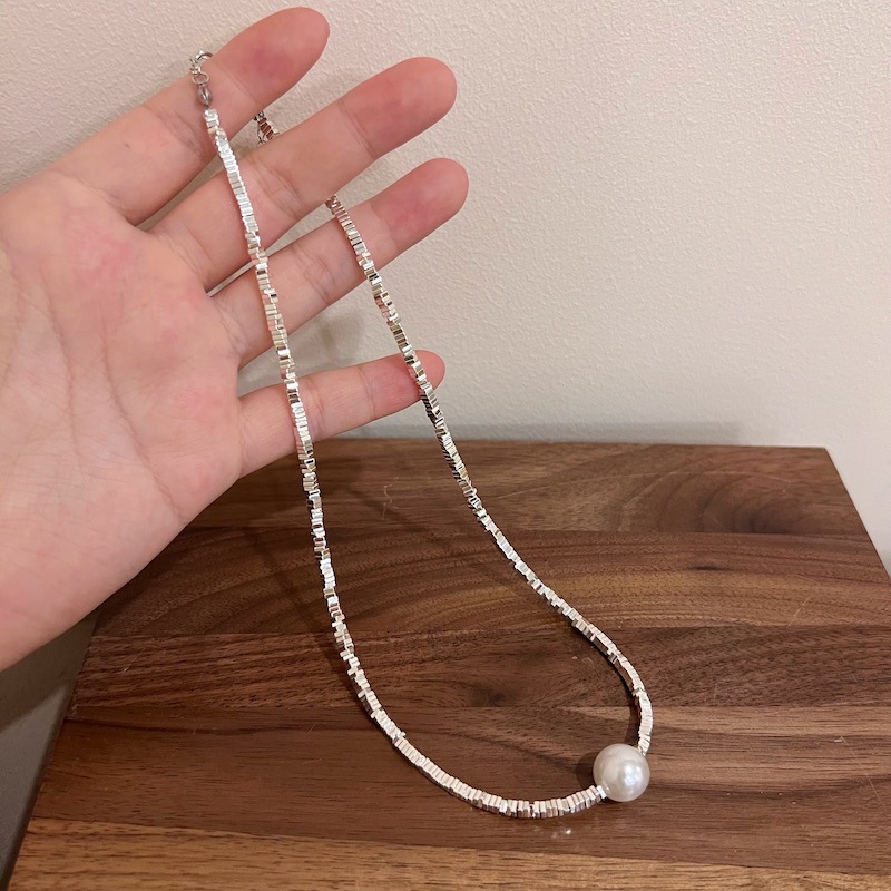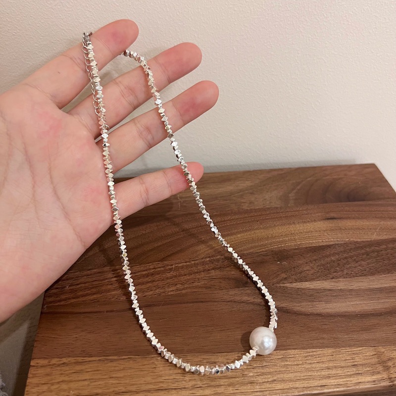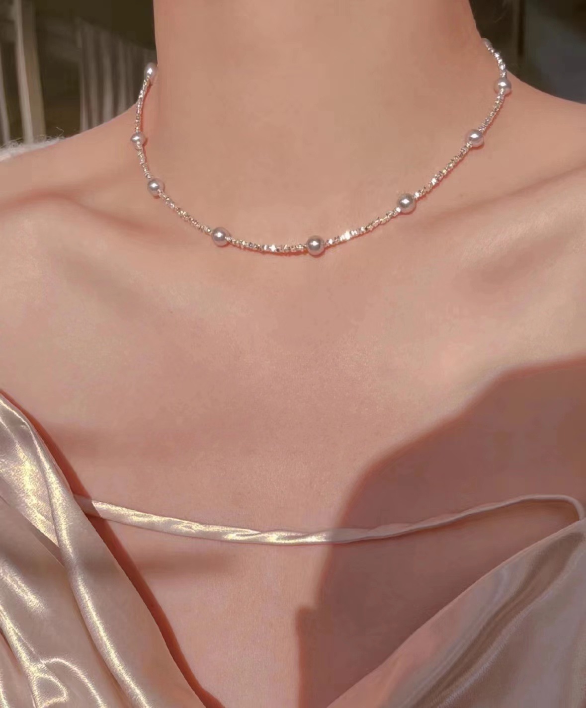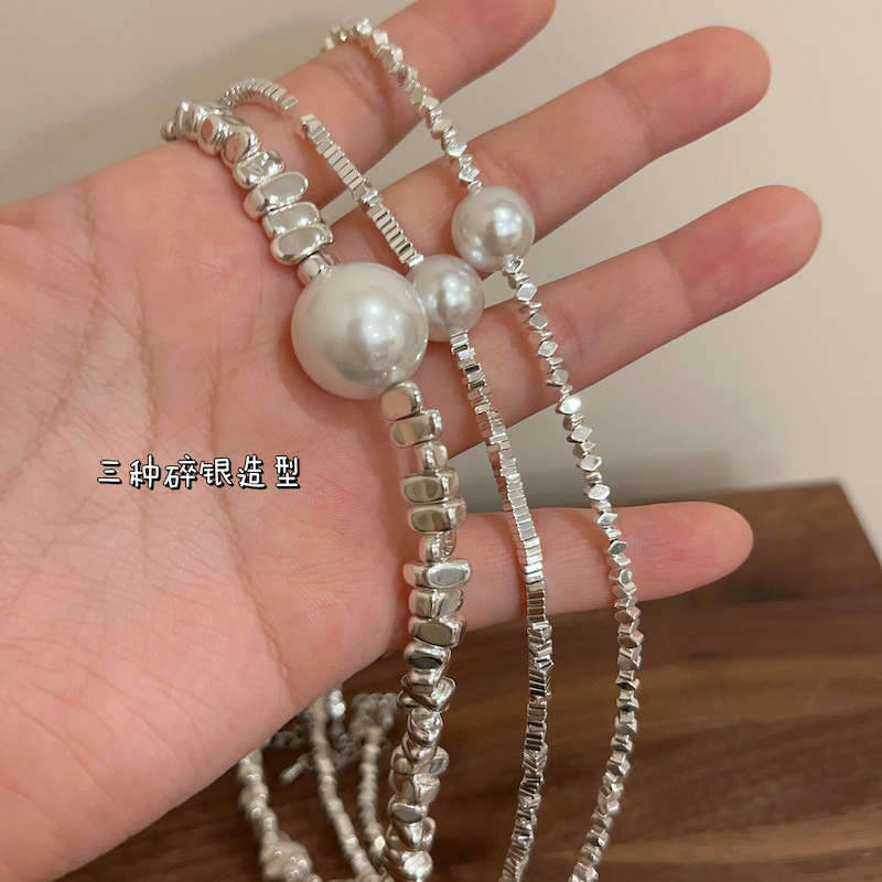 新款碎银子珍珠项链女日韩简约轻奢小众设计感叠戴素链锁骨链颈链