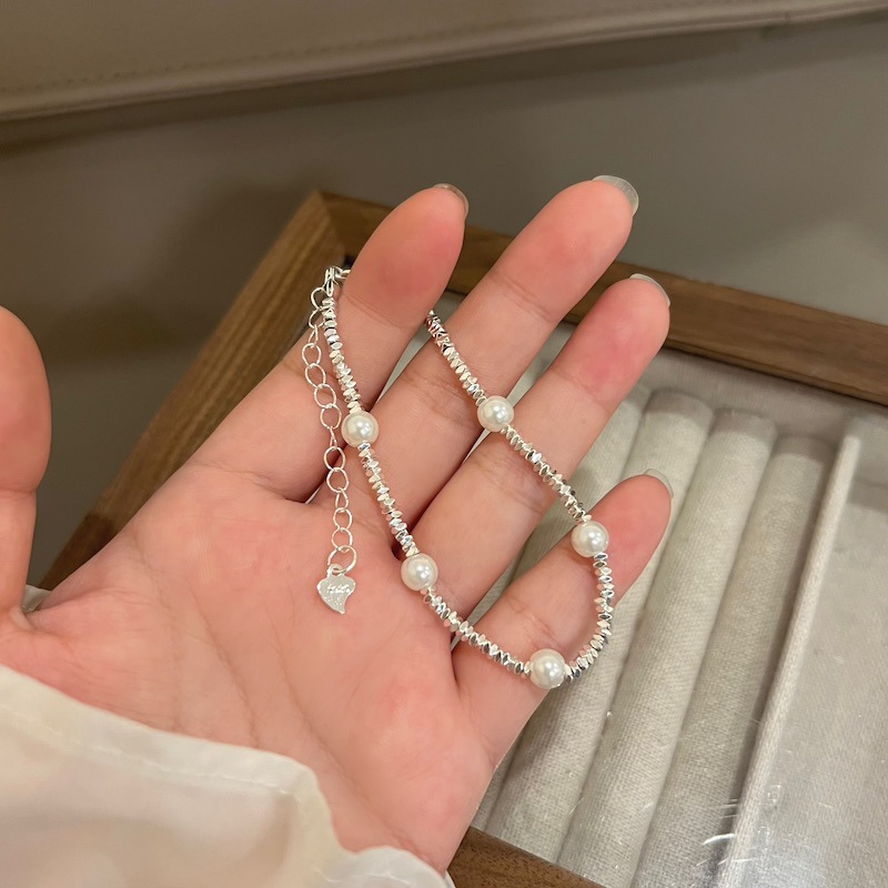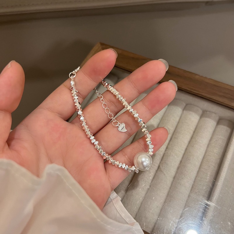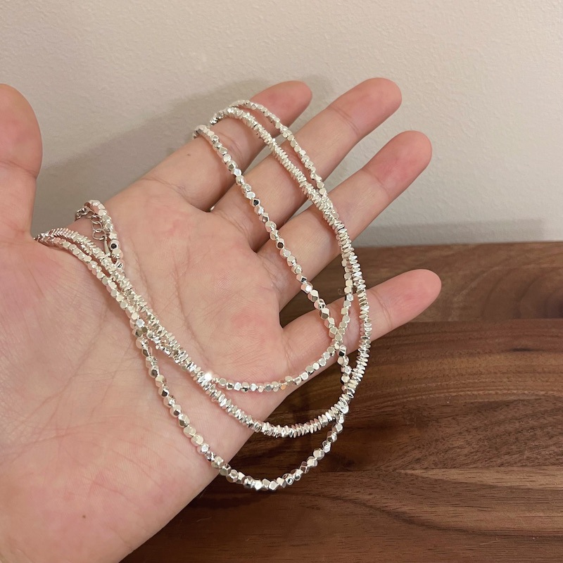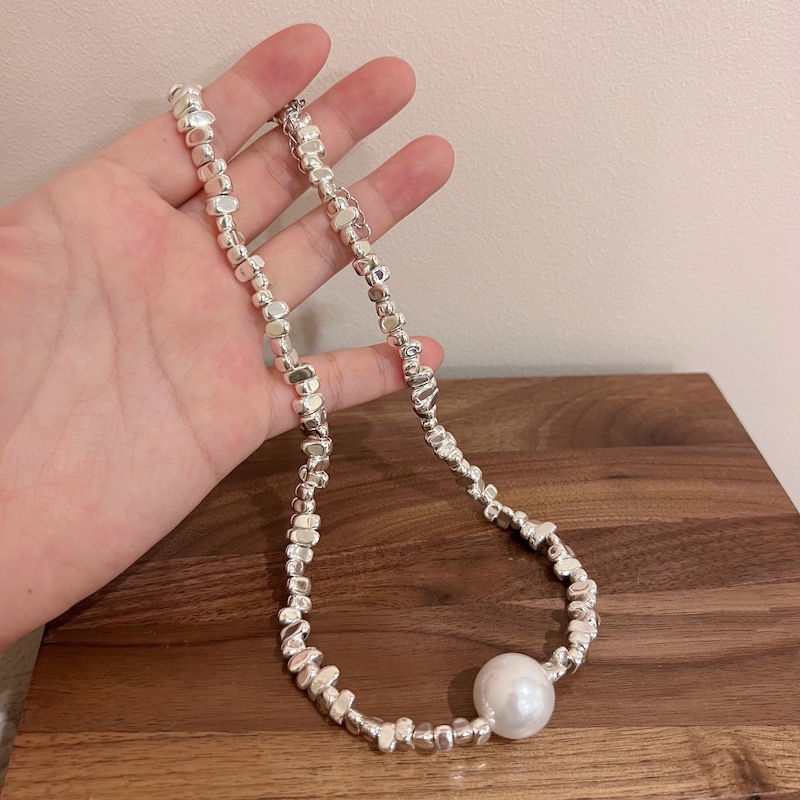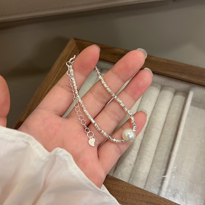 新款碎银子珍珠项链女日韩简约轻奢小众设计感叠戴素链锁骨链颈链