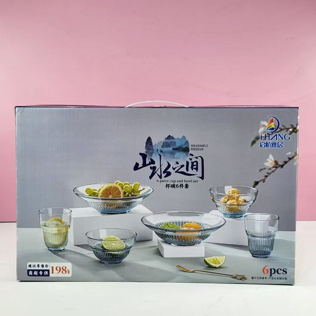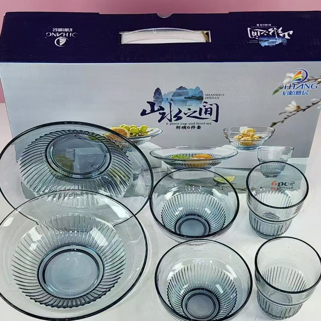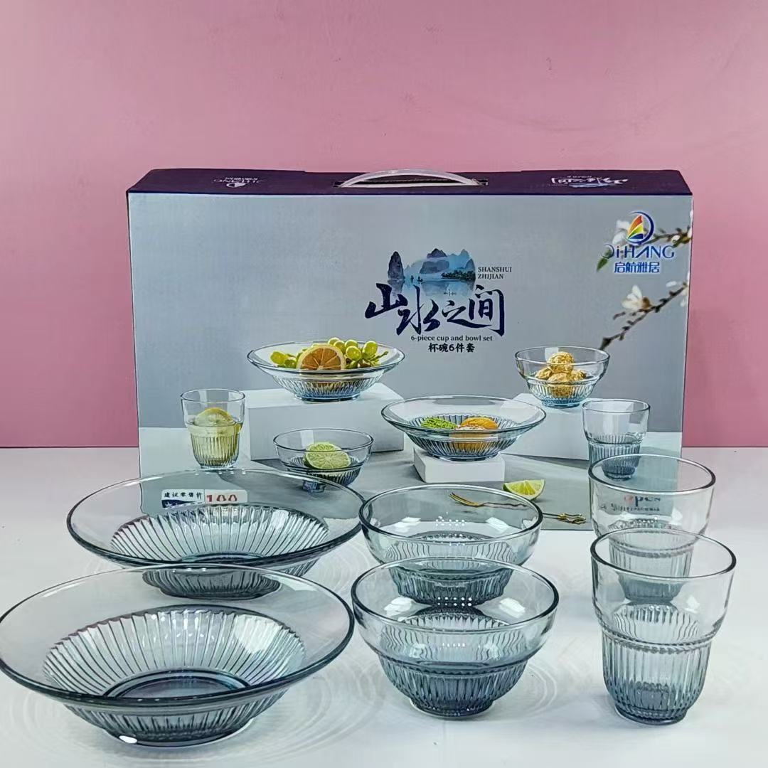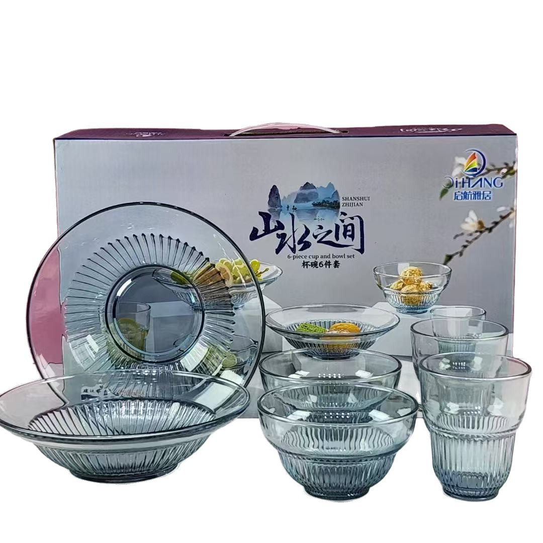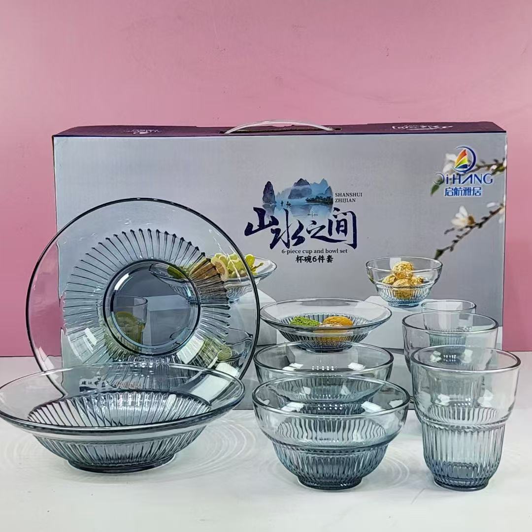高颜值璃光杯碗十件套大礼盒玻璃碗盘餐具套装五 商务活动节庆礼