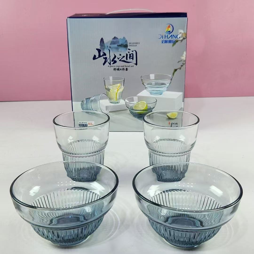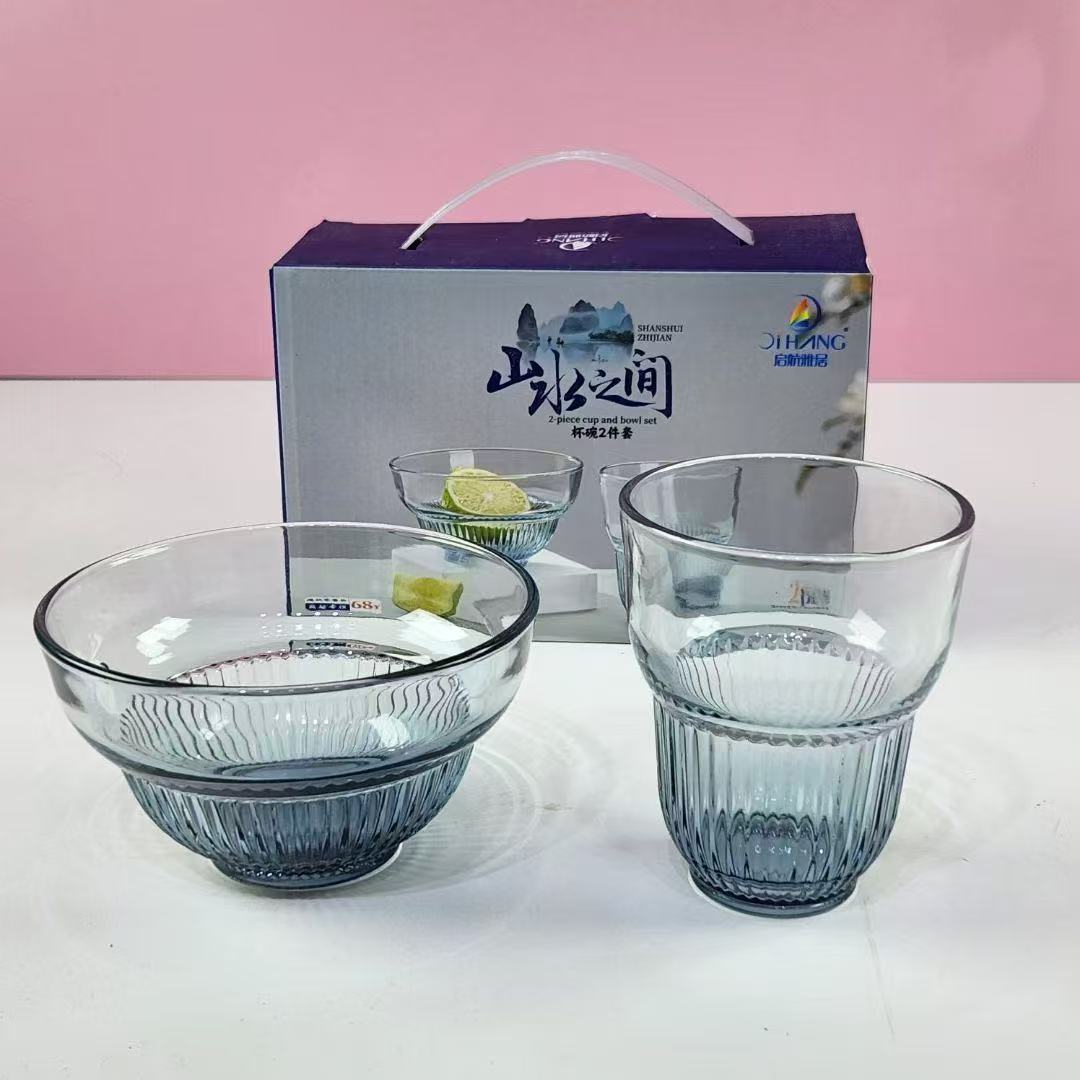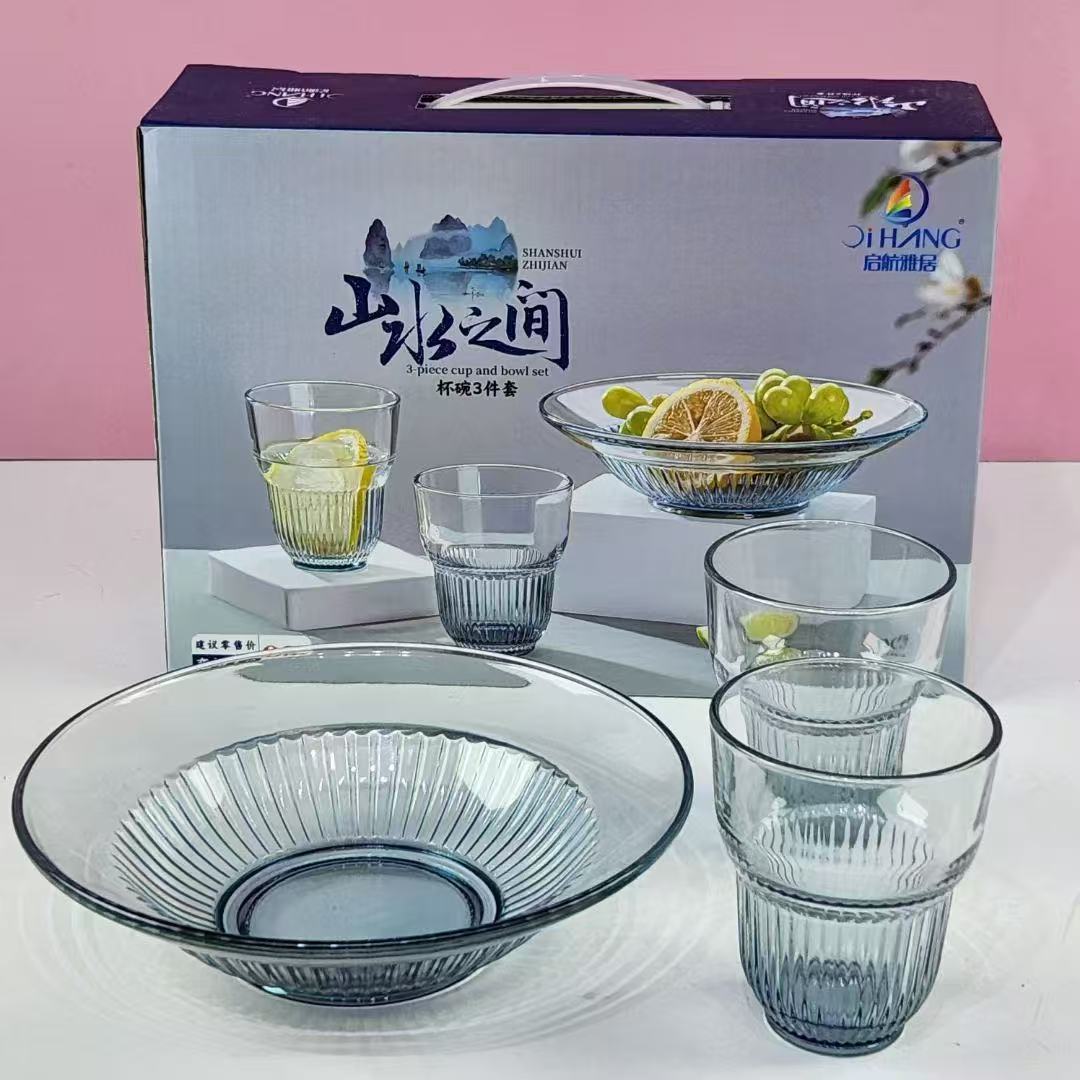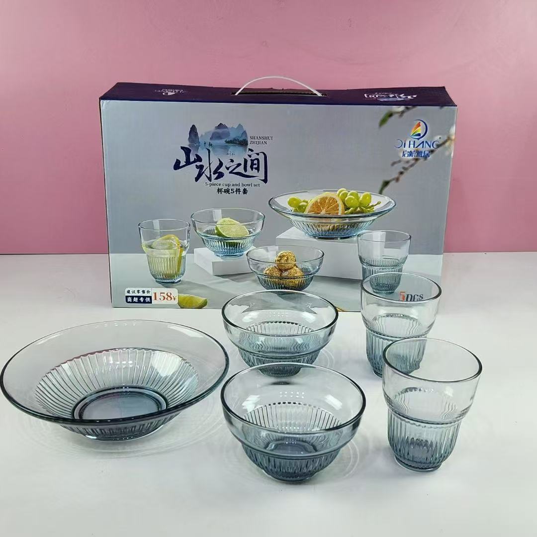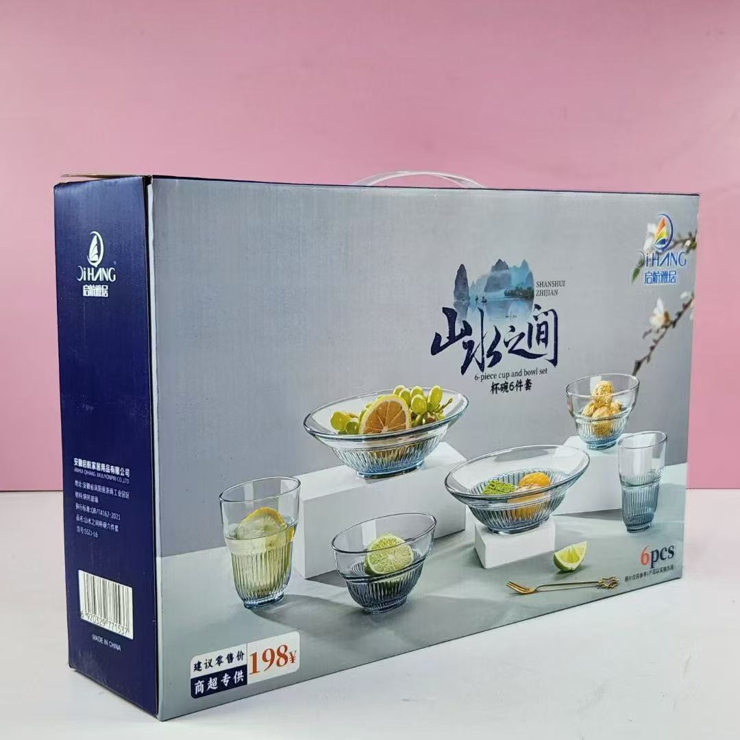 高颜值璃光杯碗十件套大礼盒玻璃碗盘餐具套装五 商务活动节庆礼
