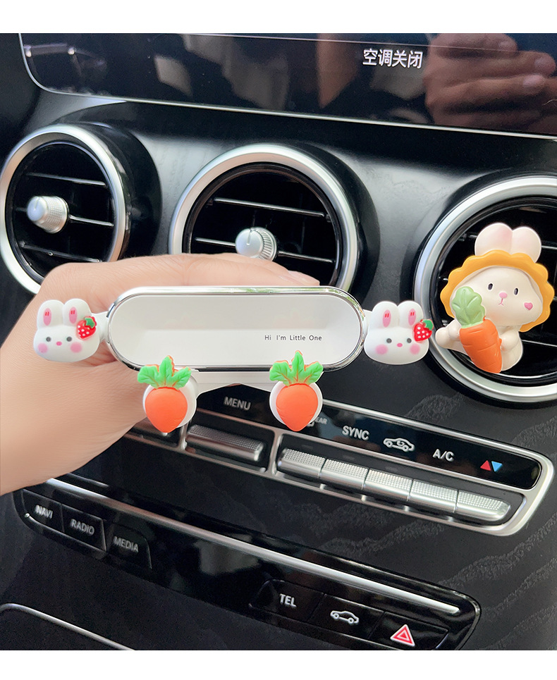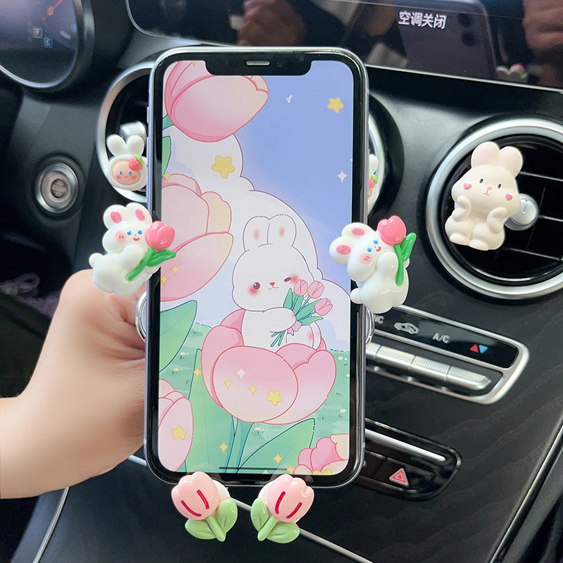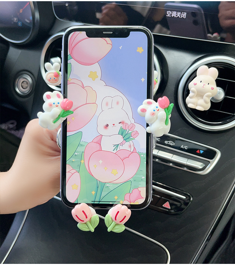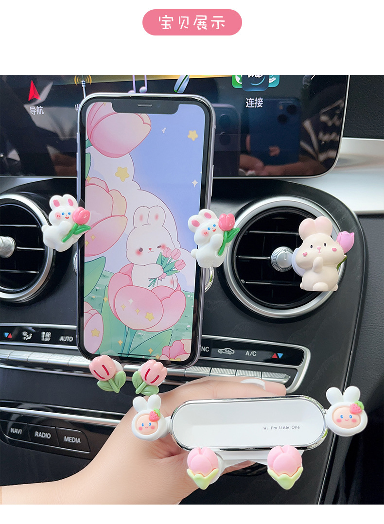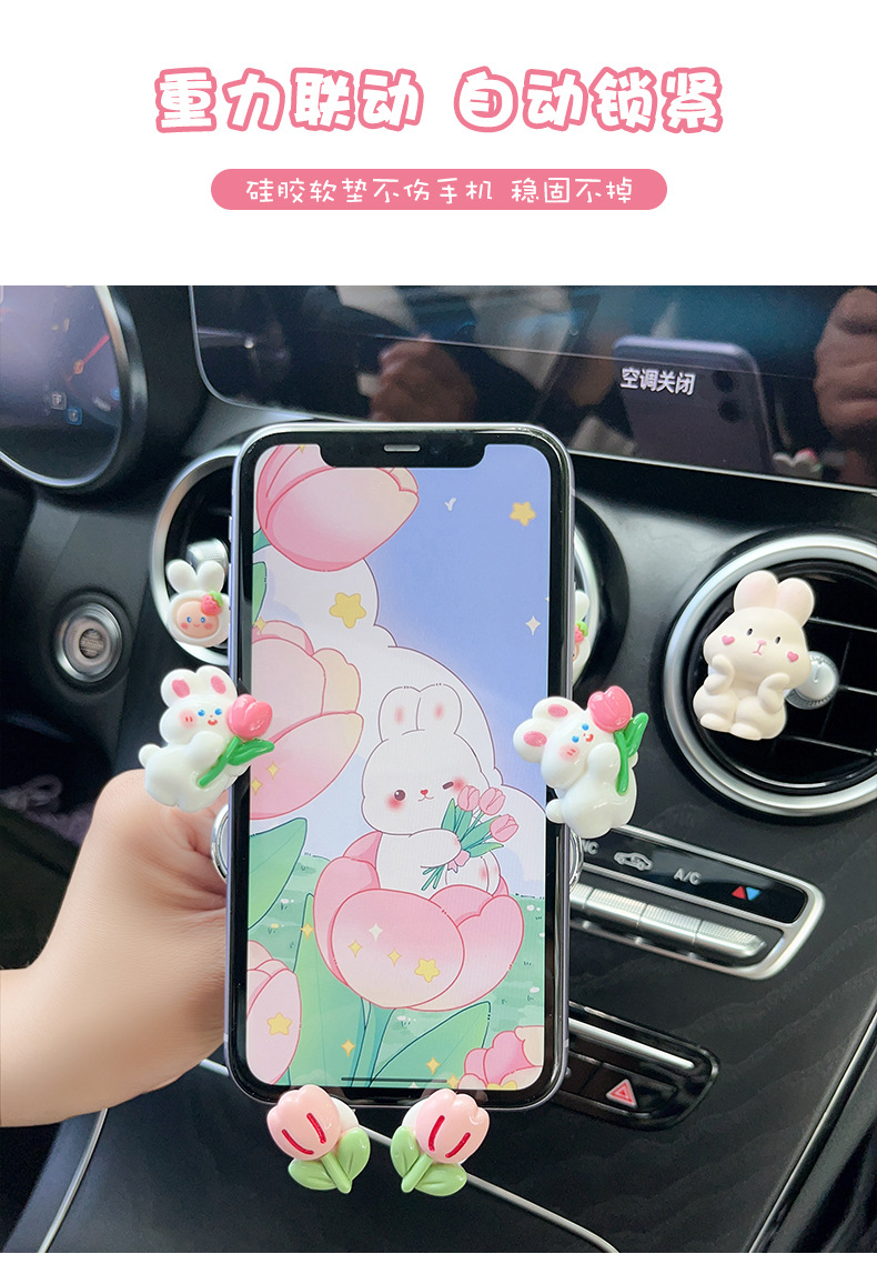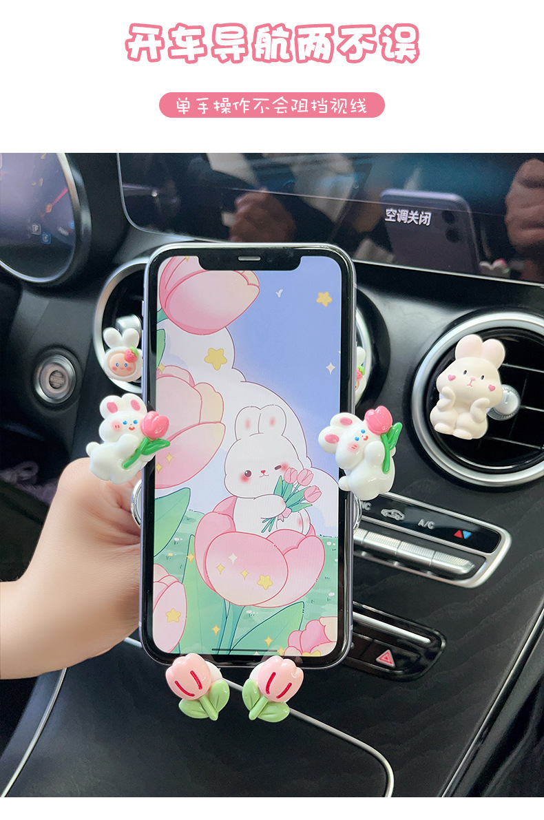 新款车载手机支架导航车上卡通小兔车内出风口装饰汽车固定支撑架