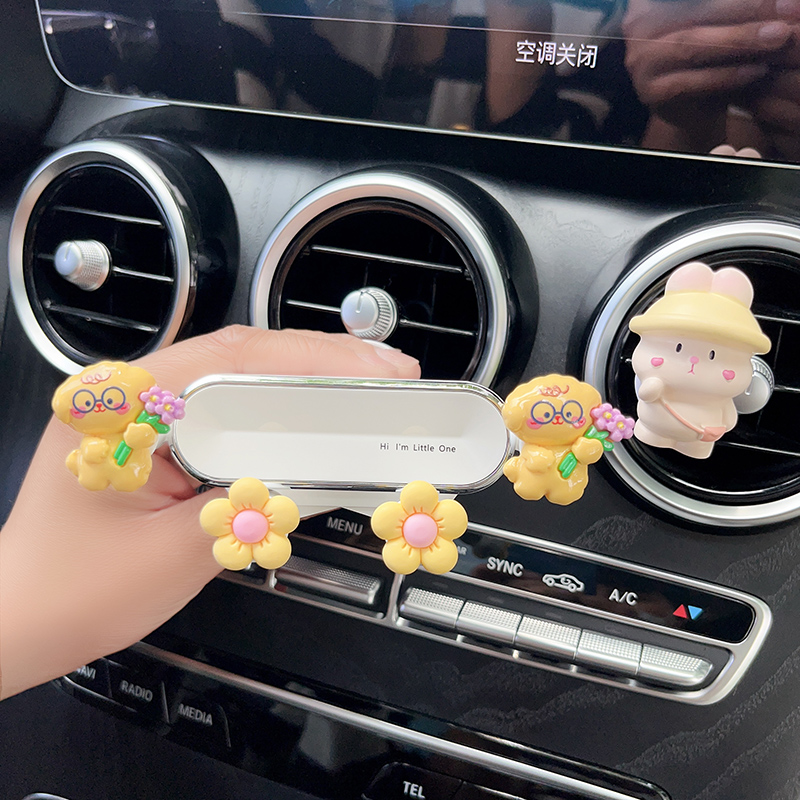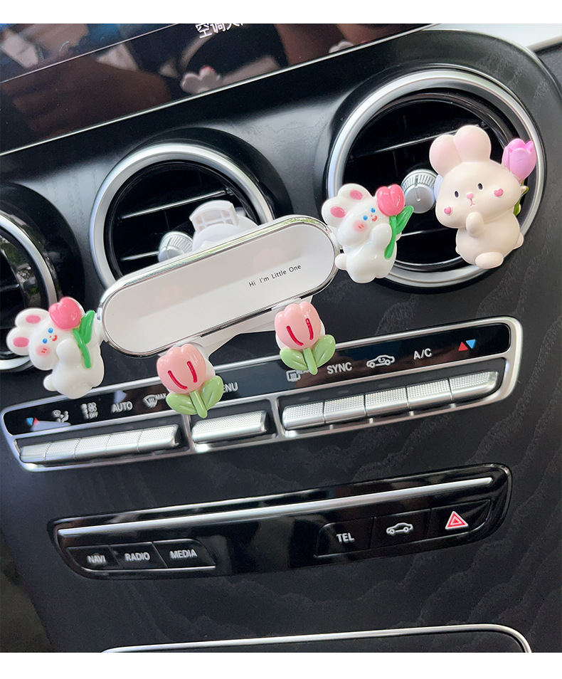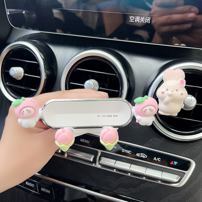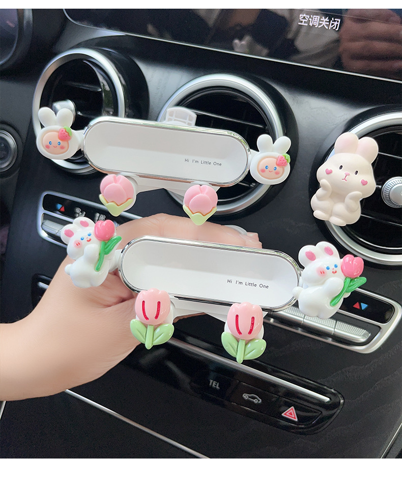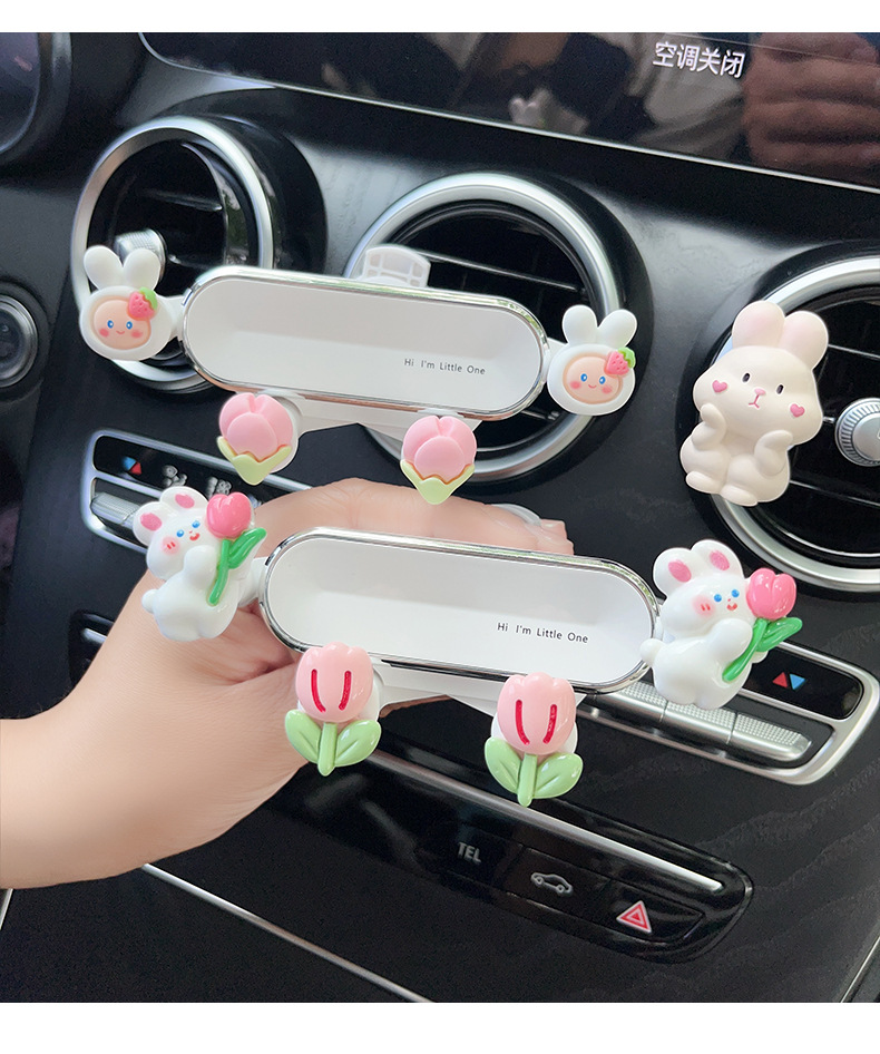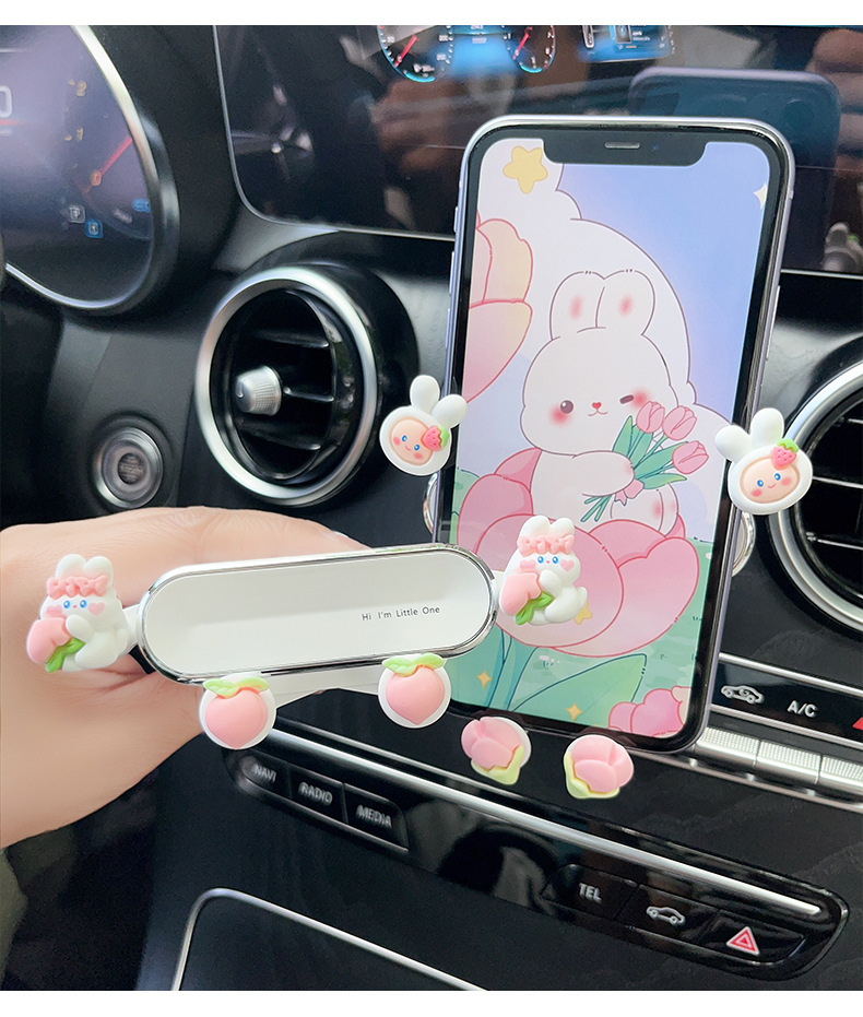 新款车载手机支架导航车上卡通小兔车内出风口装饰汽车固定支撑架