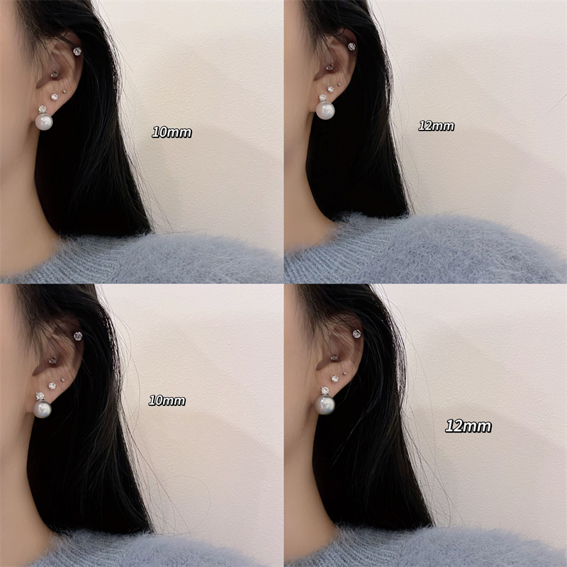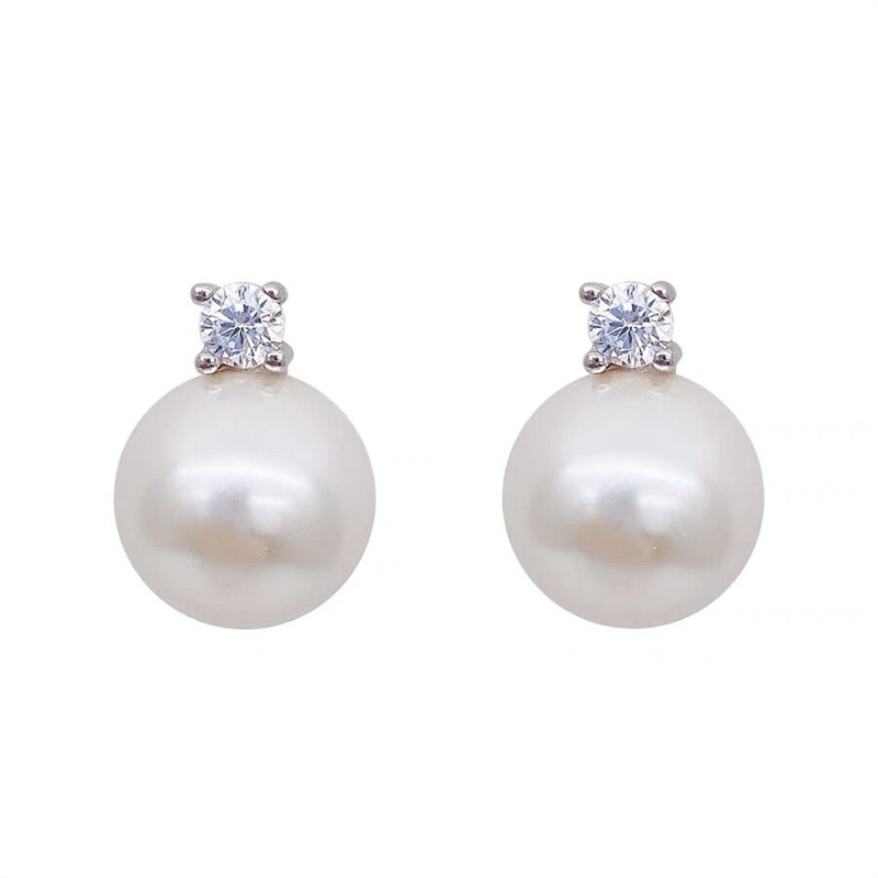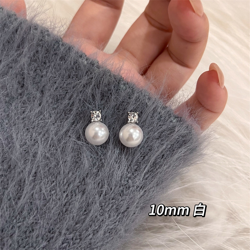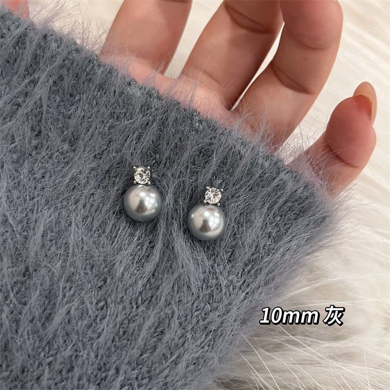 戴妃款经典法式复古锆石珍珠耳钉灰色美拉德时尚新款s925百搭耳饰