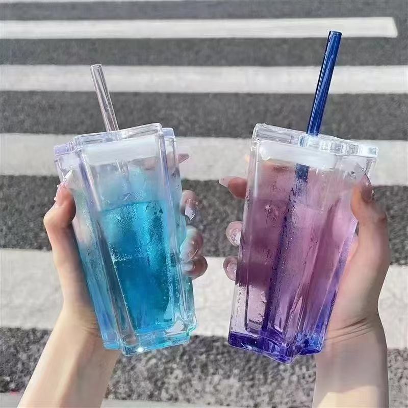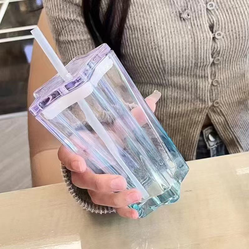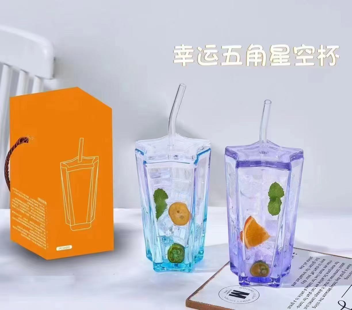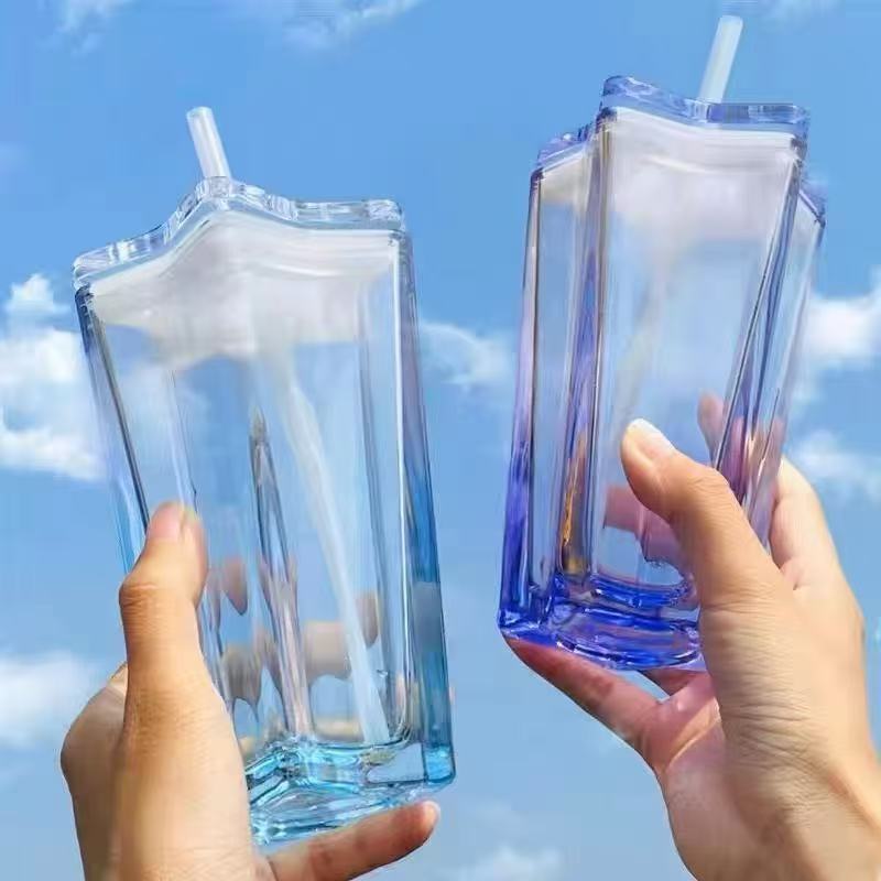 皖美之雅杯超萌字母杯礼品批发外观精致好看高颜值玻璃吸管杯