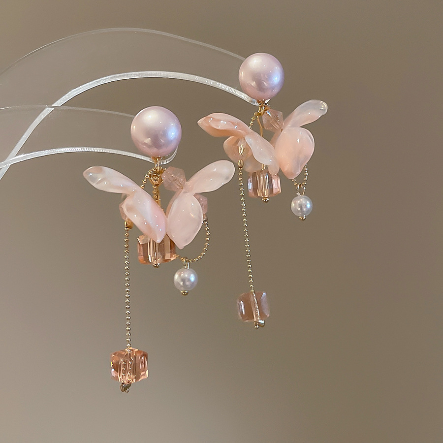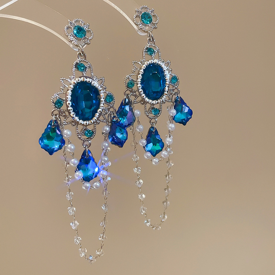 银针镶钻水晶珍珠耳环欧美复古轻奢长款耳坠清新甜美高级感耳饰女