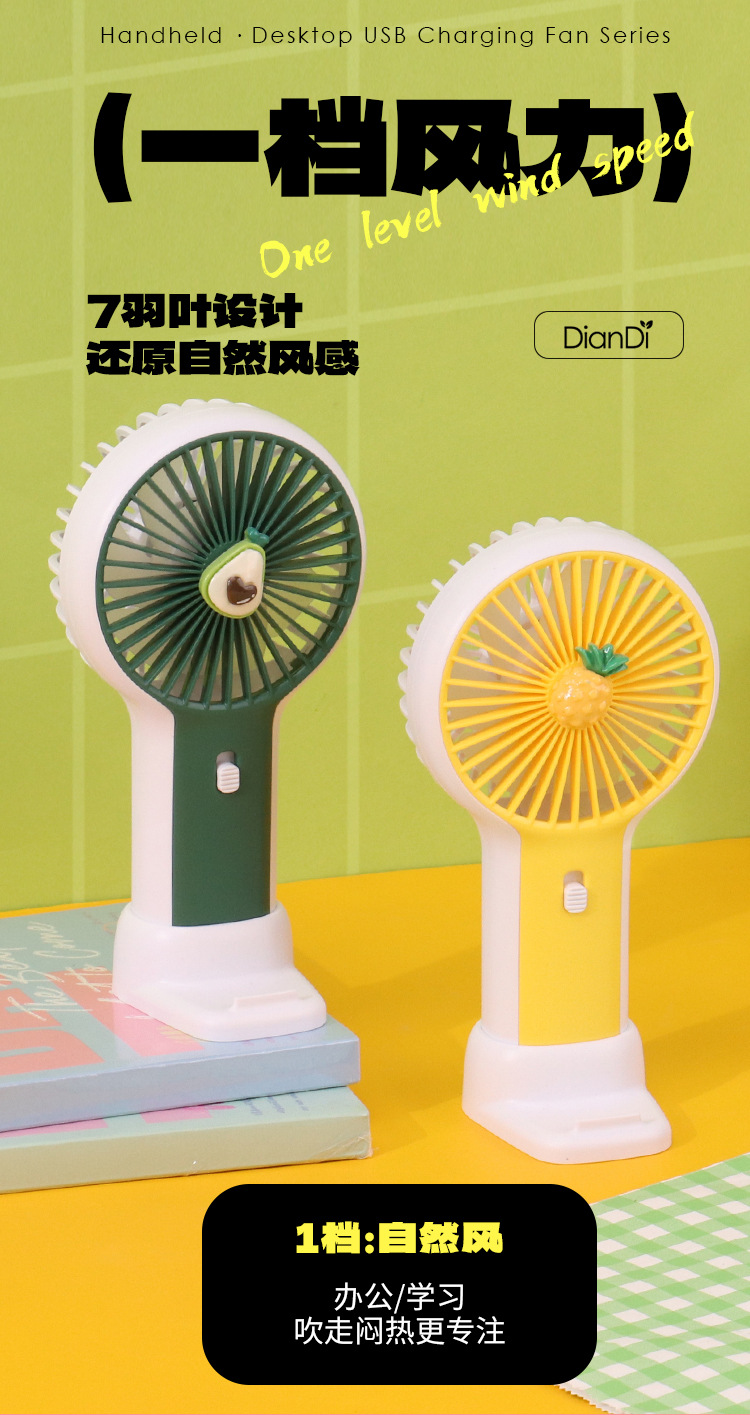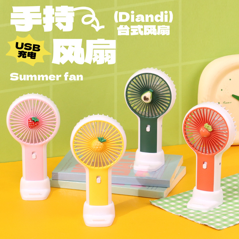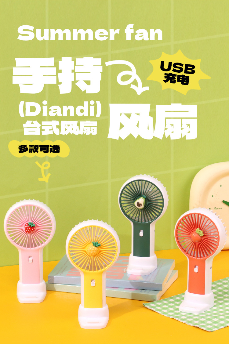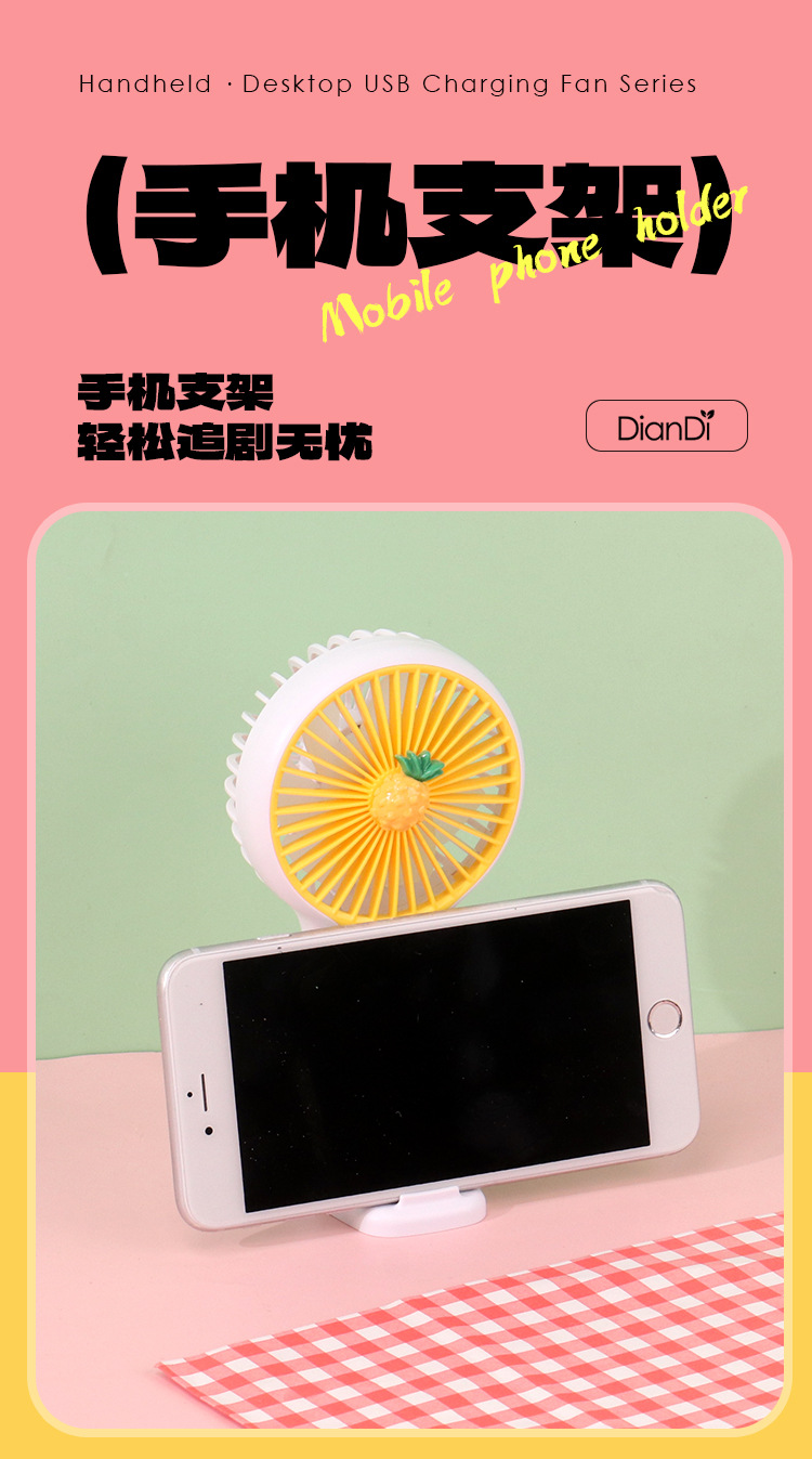 新款水果手持小风扇迷你便携式水果电扇 USB充电手机支架风扇批发