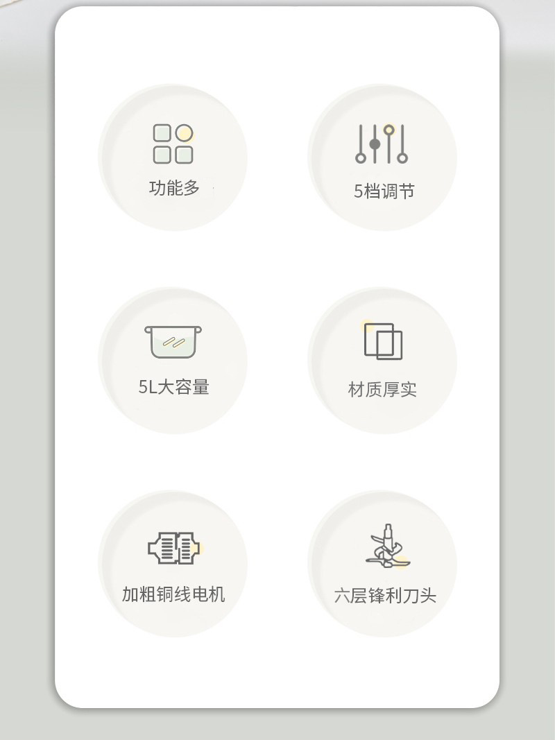 | 5 liters 5 gears [heping noodles] five sets of knives(5升5档【可和面】五套刀) | USD $10.66 | 99736 piece available |