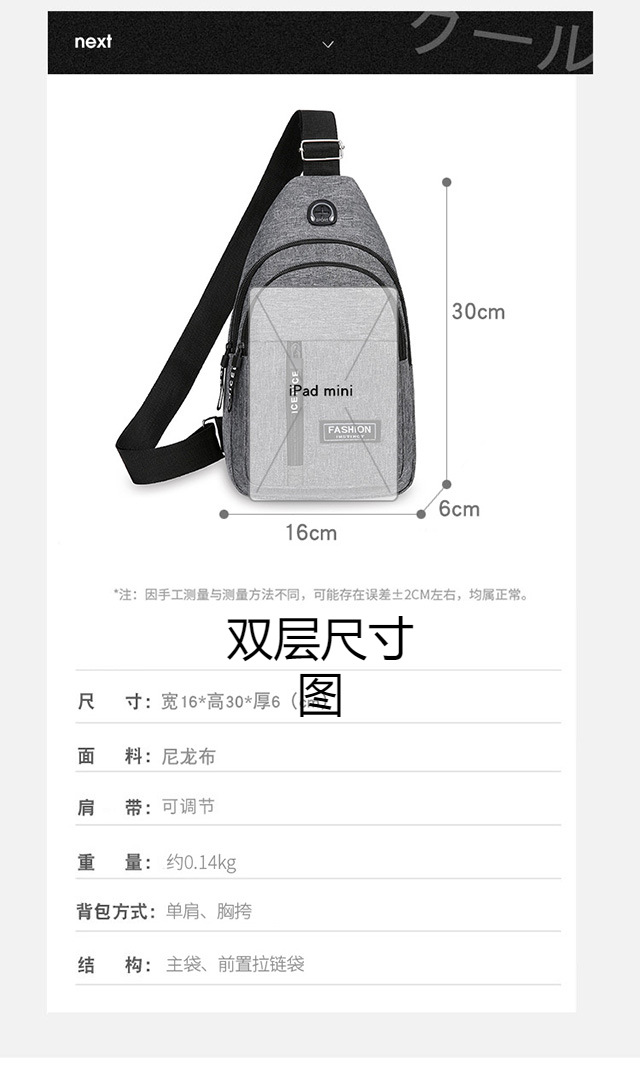 新款跨境男士牛津布胸包多功能大容量运动户外休闲单肩背包斜挎包