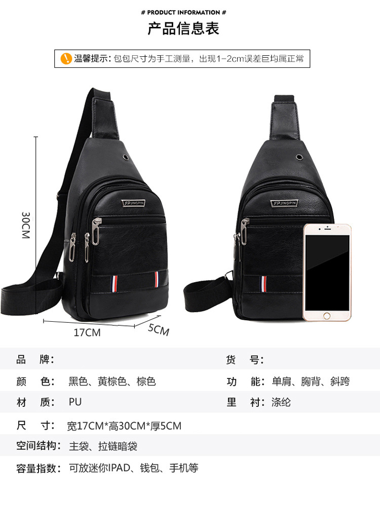2023新款男士商务胸包 骑行运动防水斜挎包 休闲胸包跨境批发代发