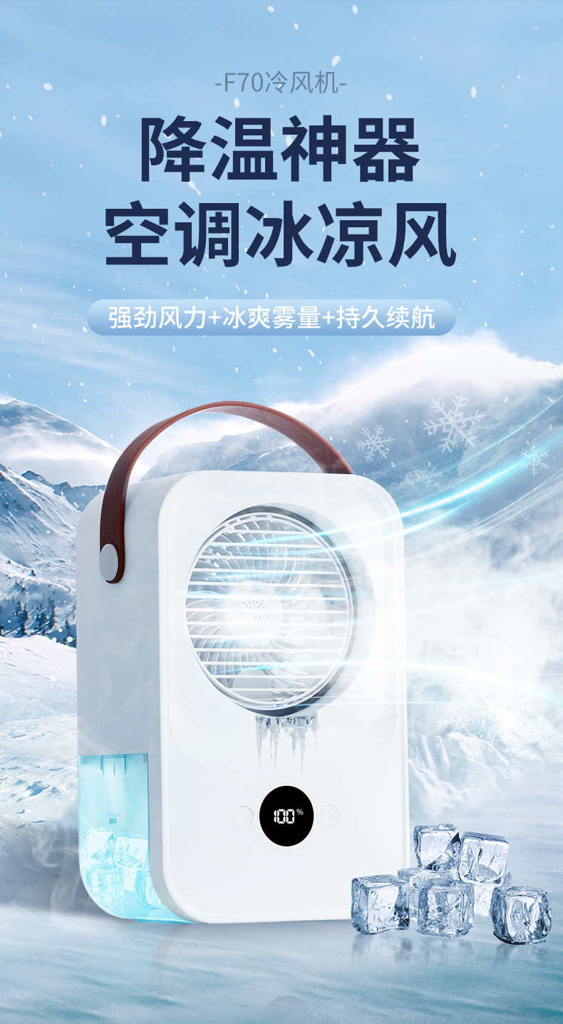 新款USB迷你制冷空调家用小型冷风机 便携移动加湿桌面水冷电风扇