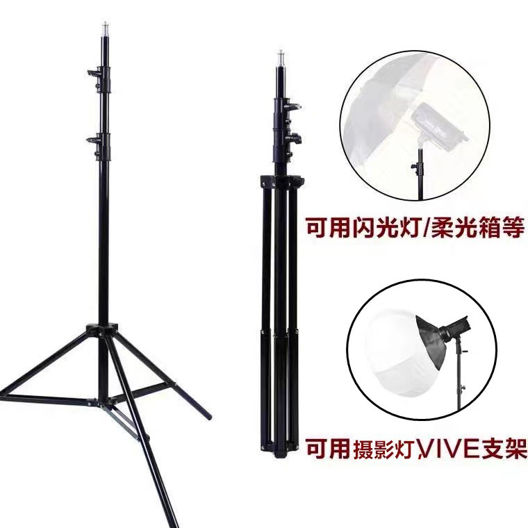 厂家批发手机直播支架户外便携主播拍摄落地三脚架特厚2.8米灯架