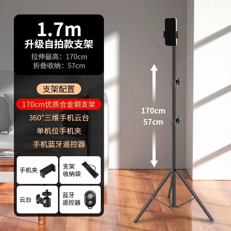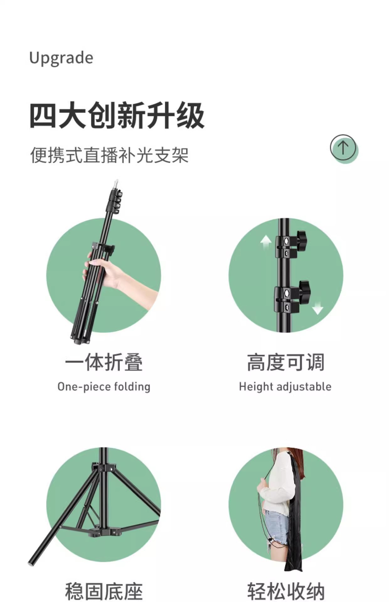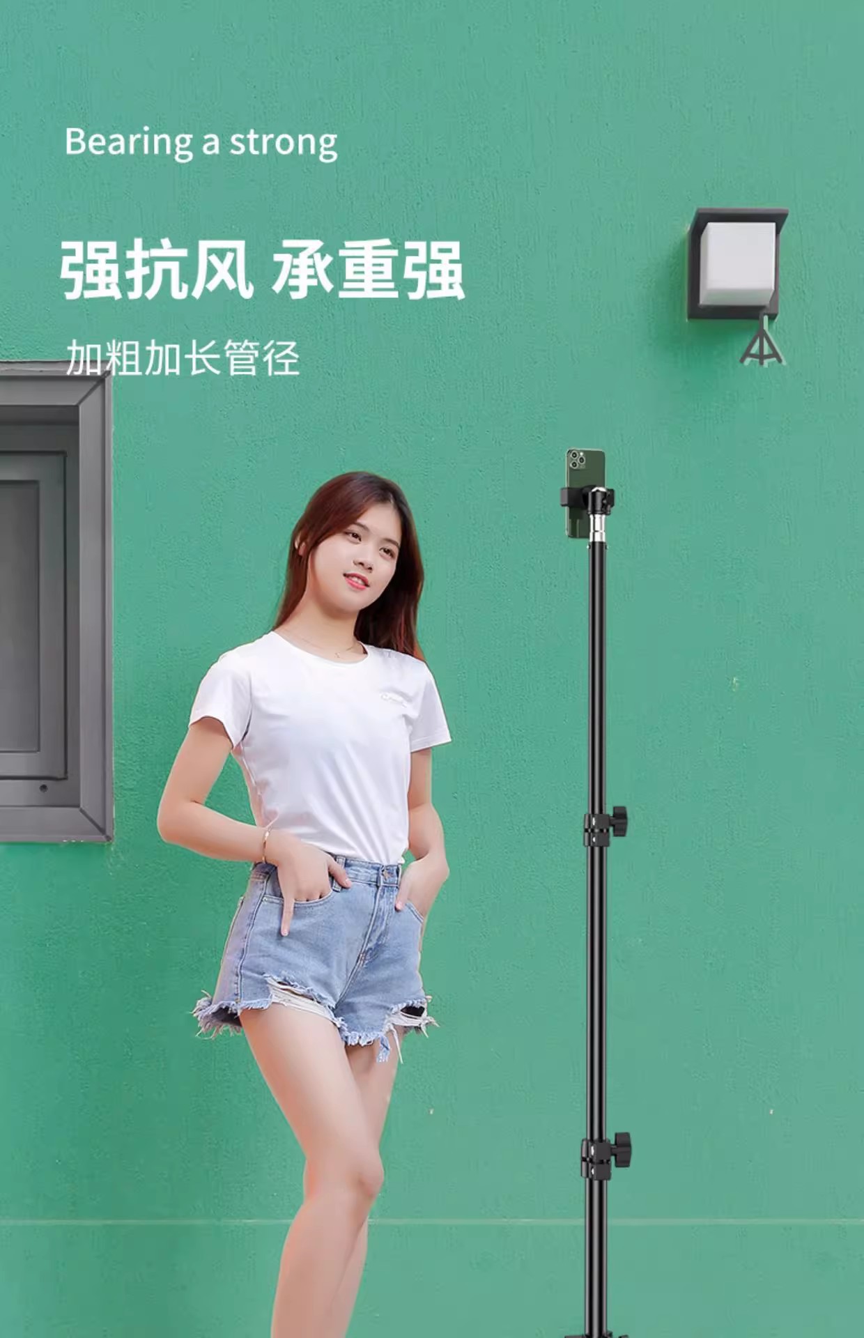 手机直播摄影支架户外拍照自拍碳素钢灯架2.1米加厚落地三脚架