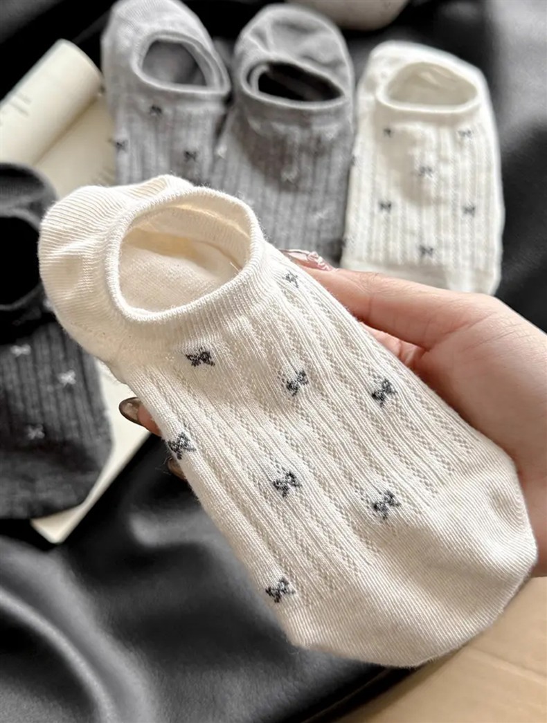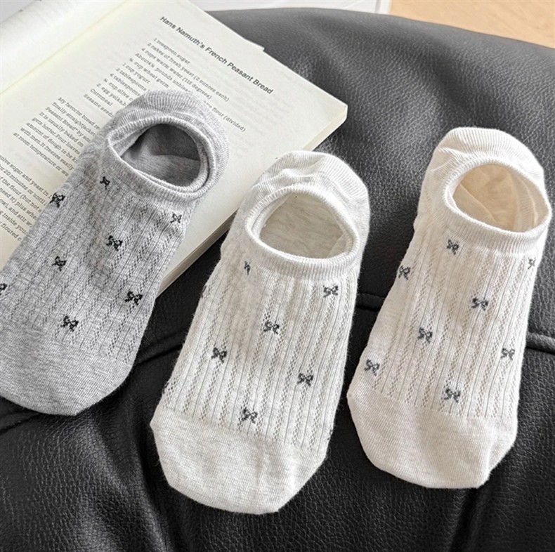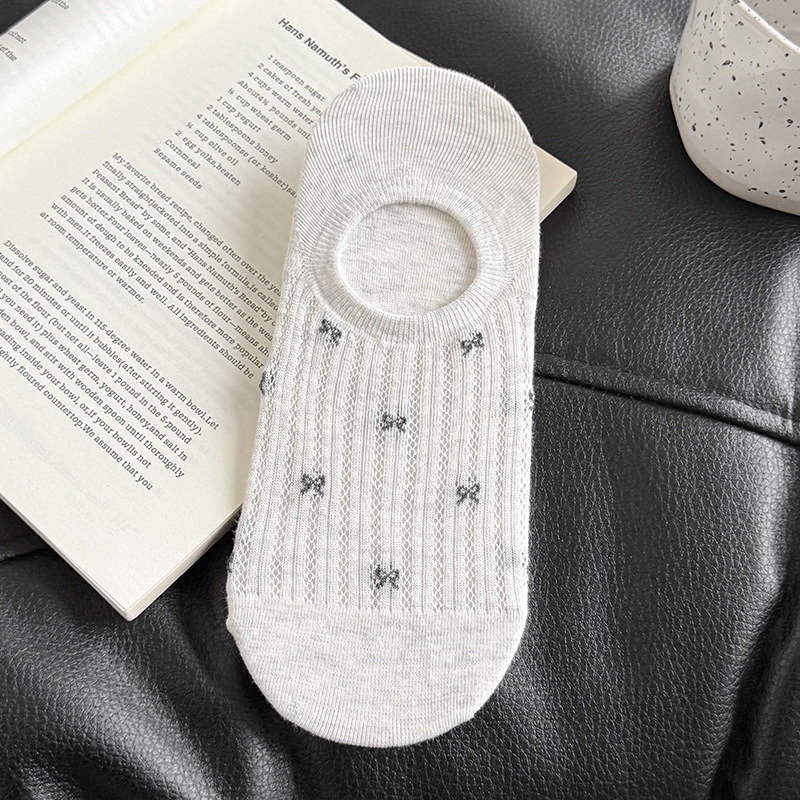 蝴蝶结纯棉袜子女短袜纯棉夏季薄款日系防滑不掉跟夏天隐形袜船袜