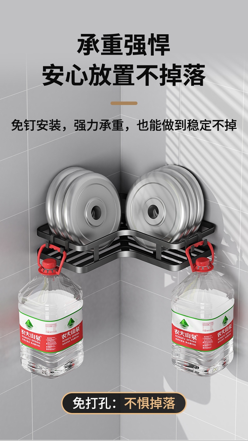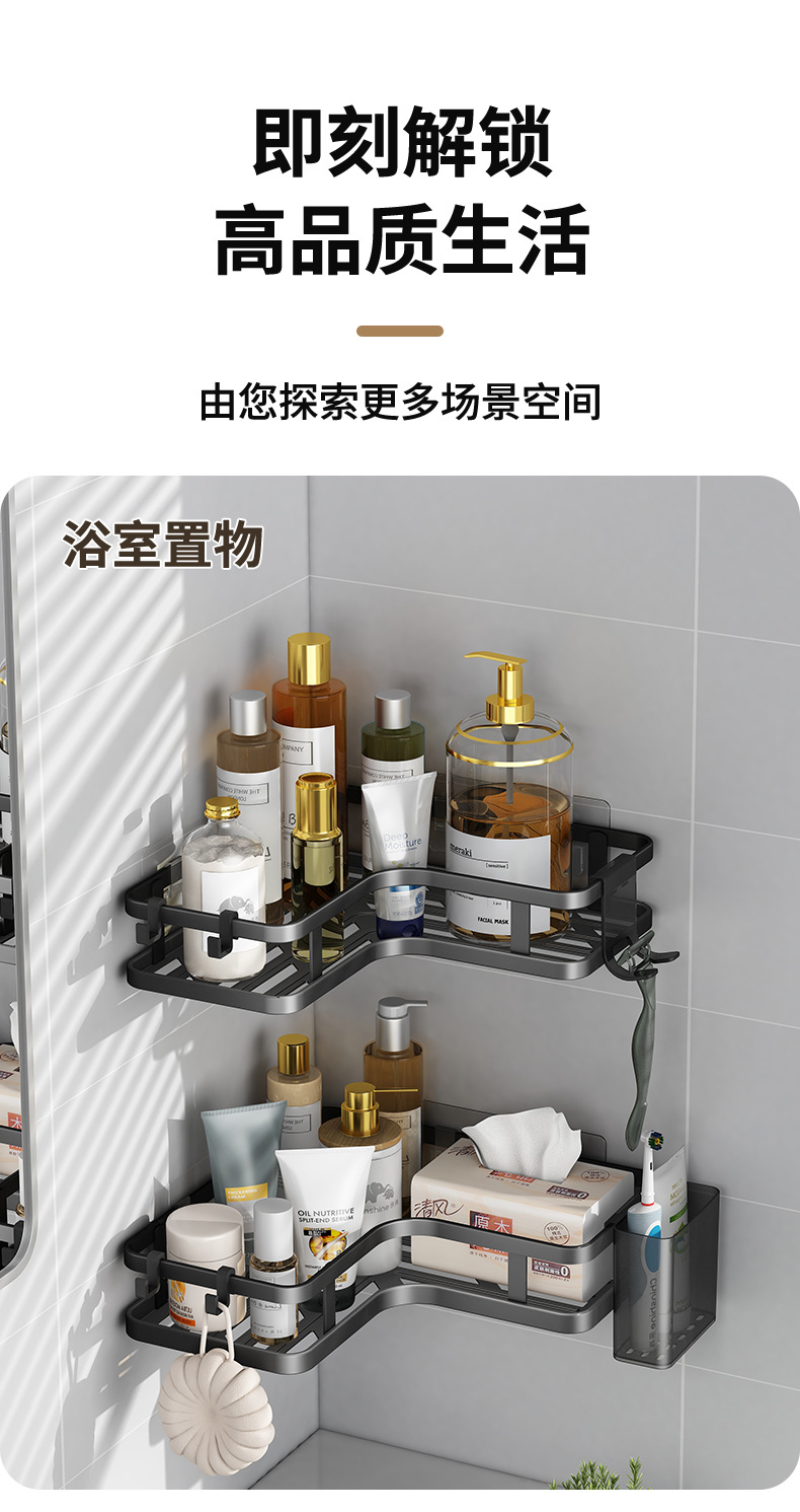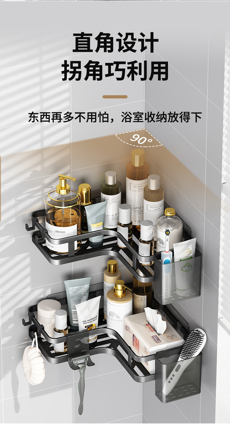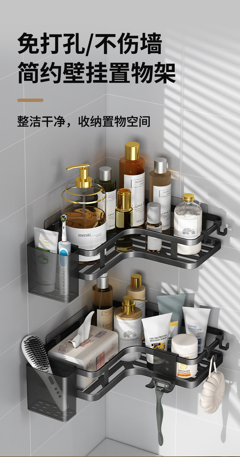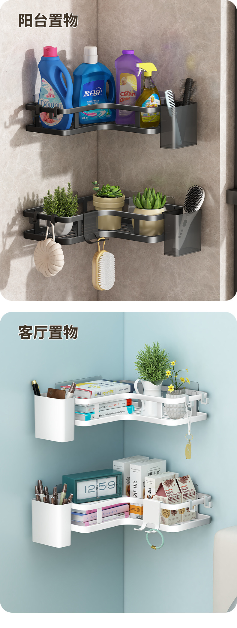浴室三角置物架卫生间免打孔墙上收纳架阳台厕所厨房转角双层架子