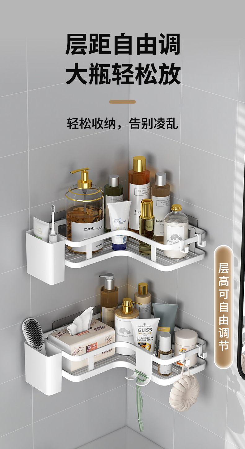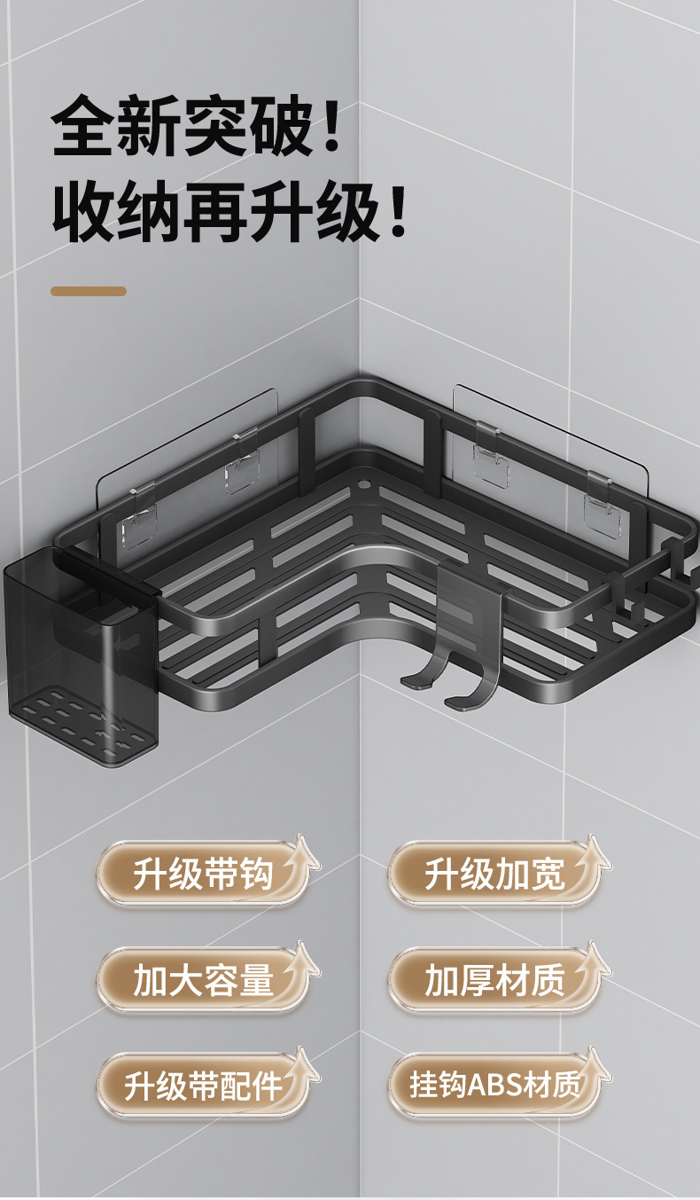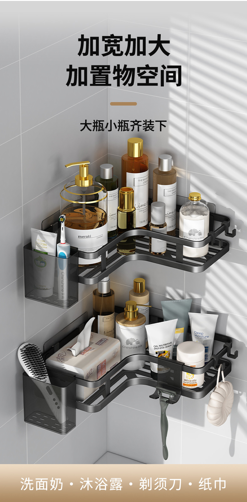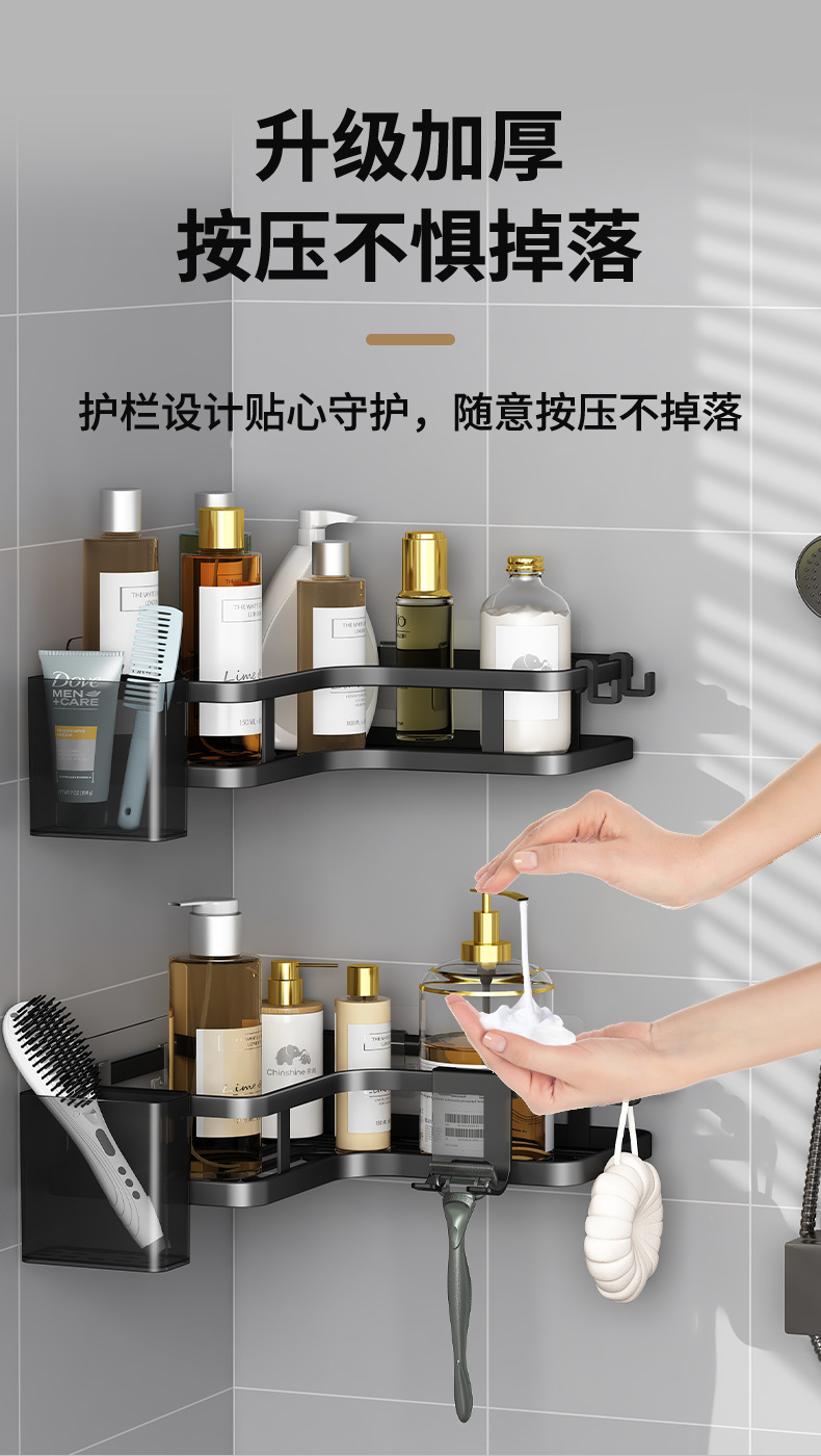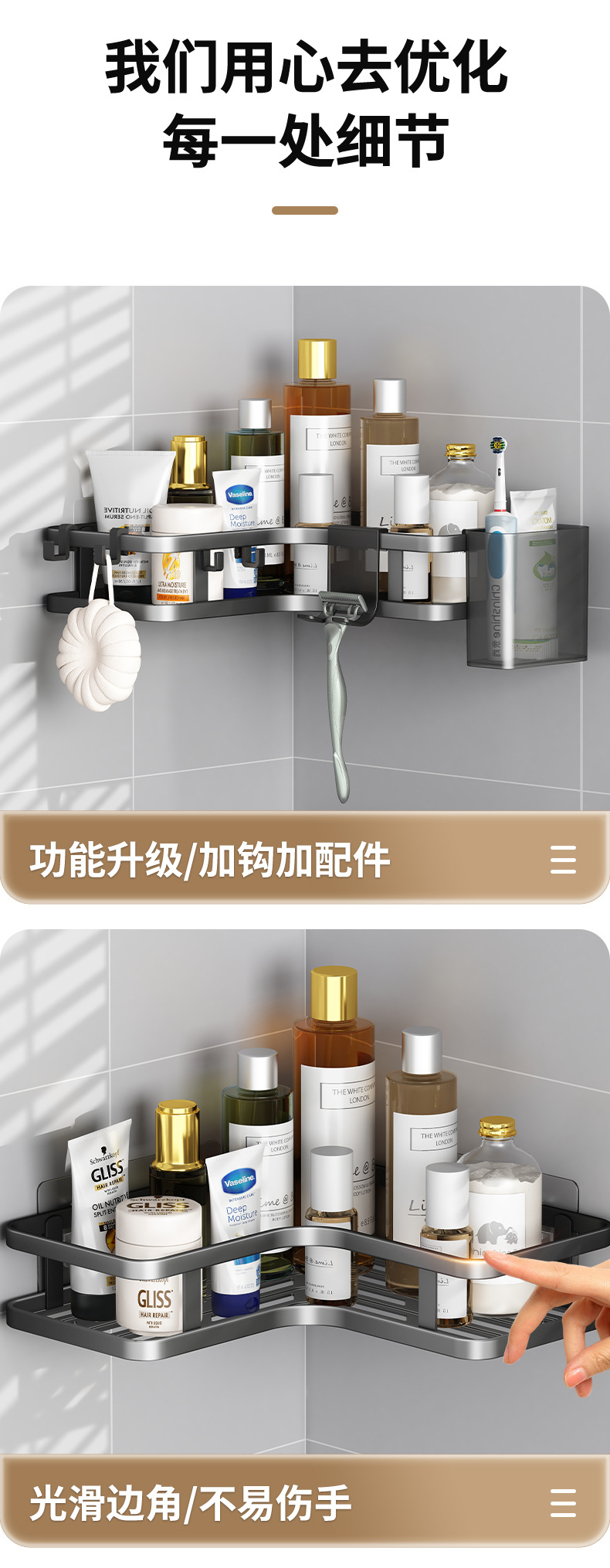浴室三角置物架卫生间免打孔墙上收纳架阳台厕所厨房转角双层架子