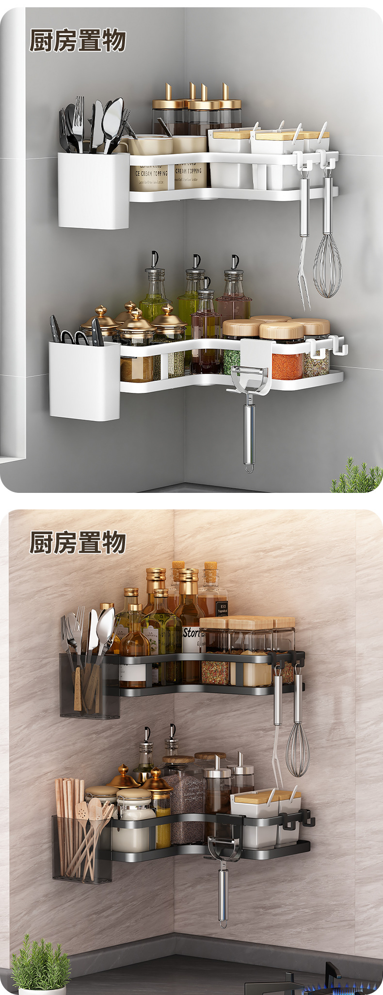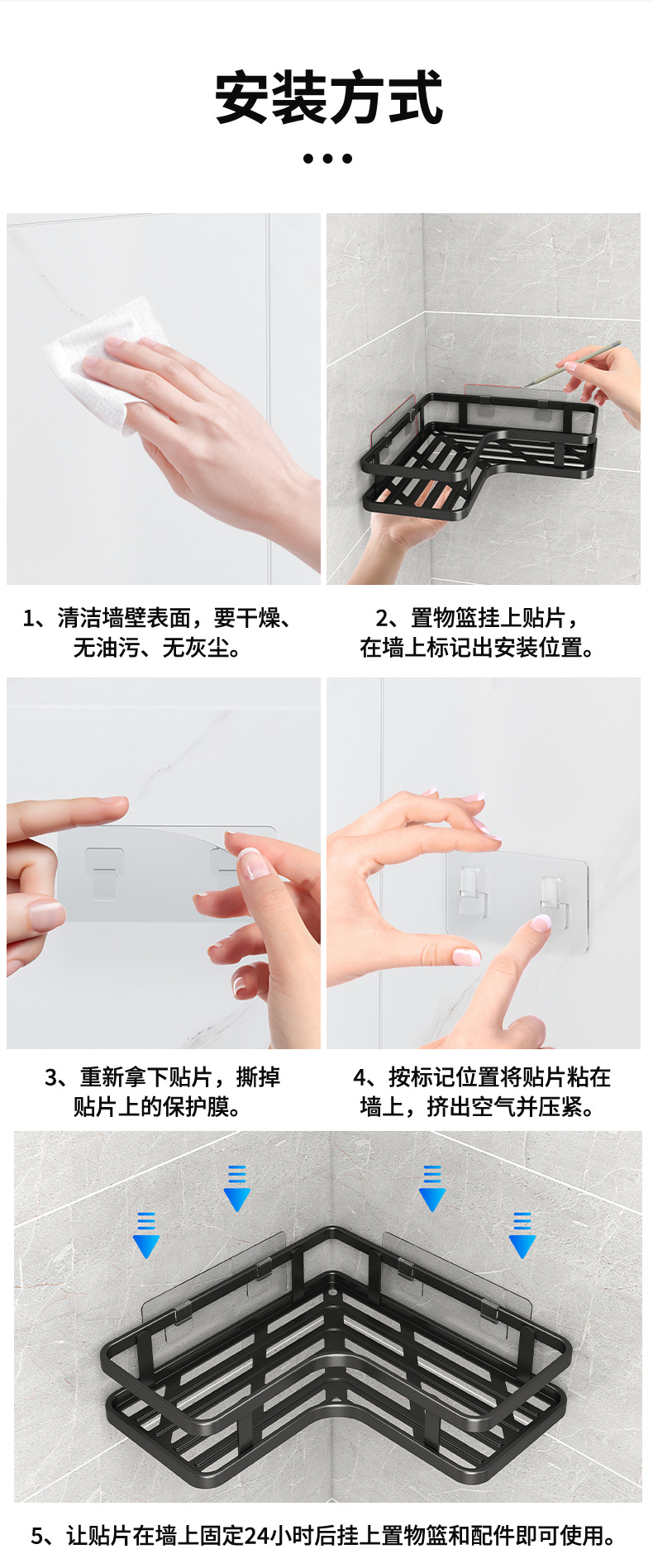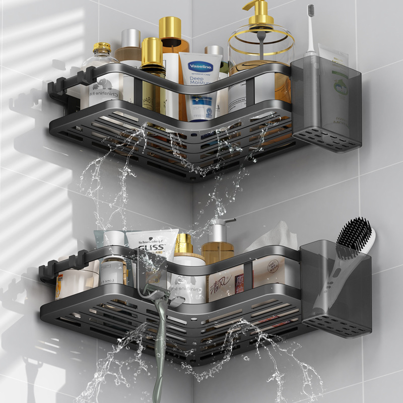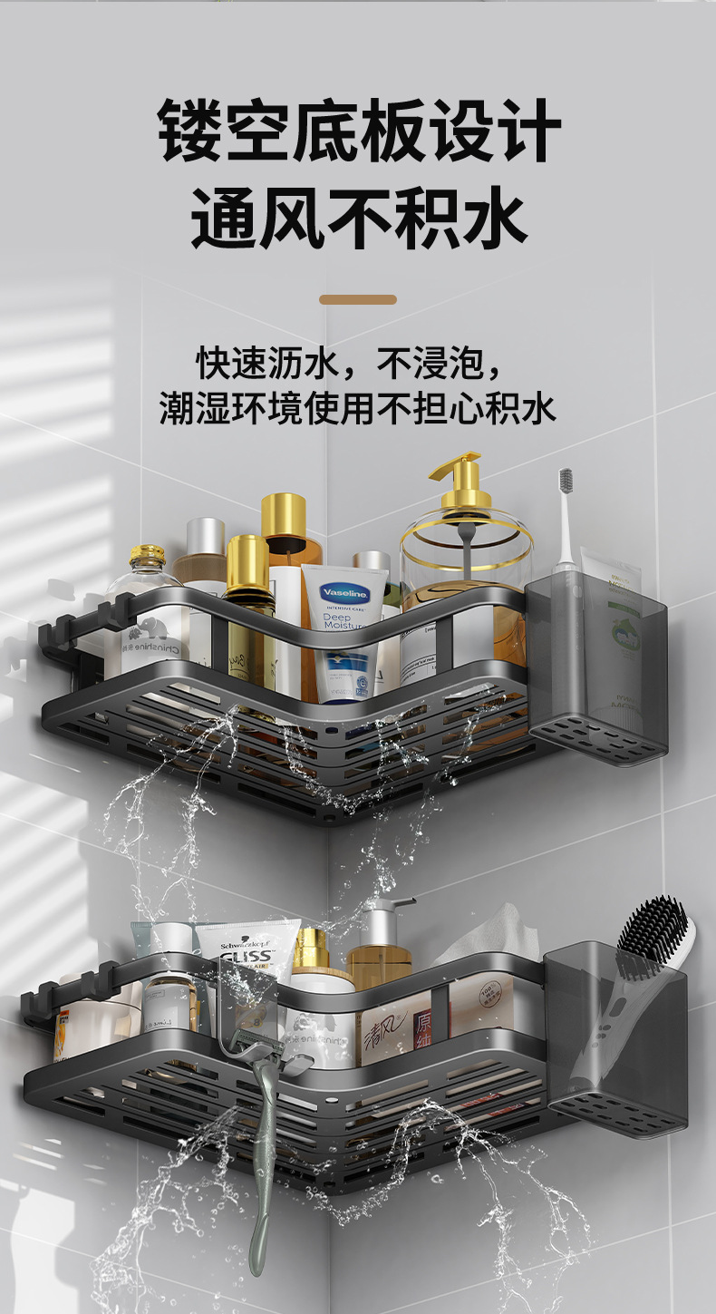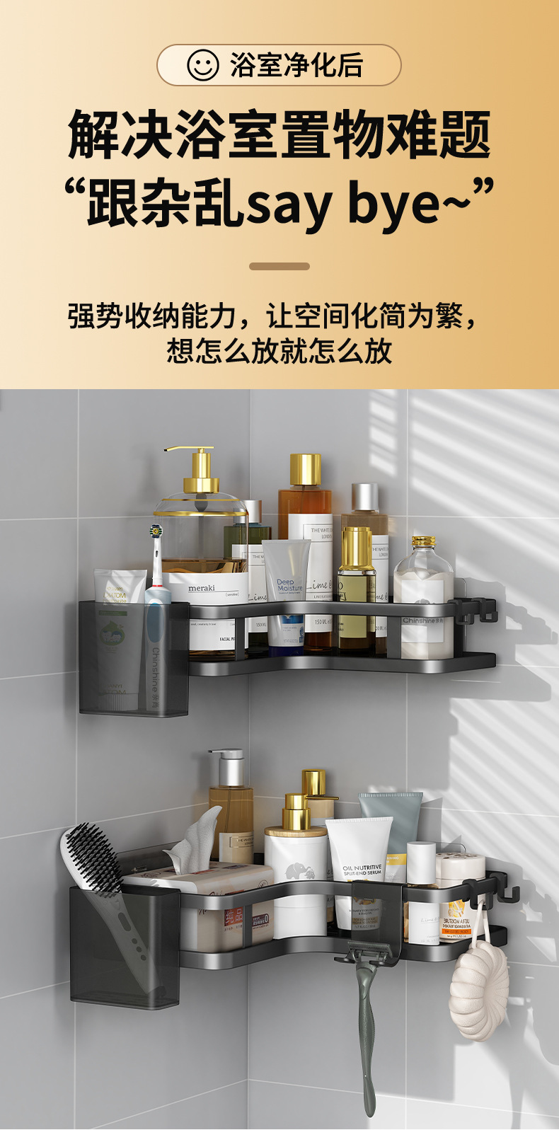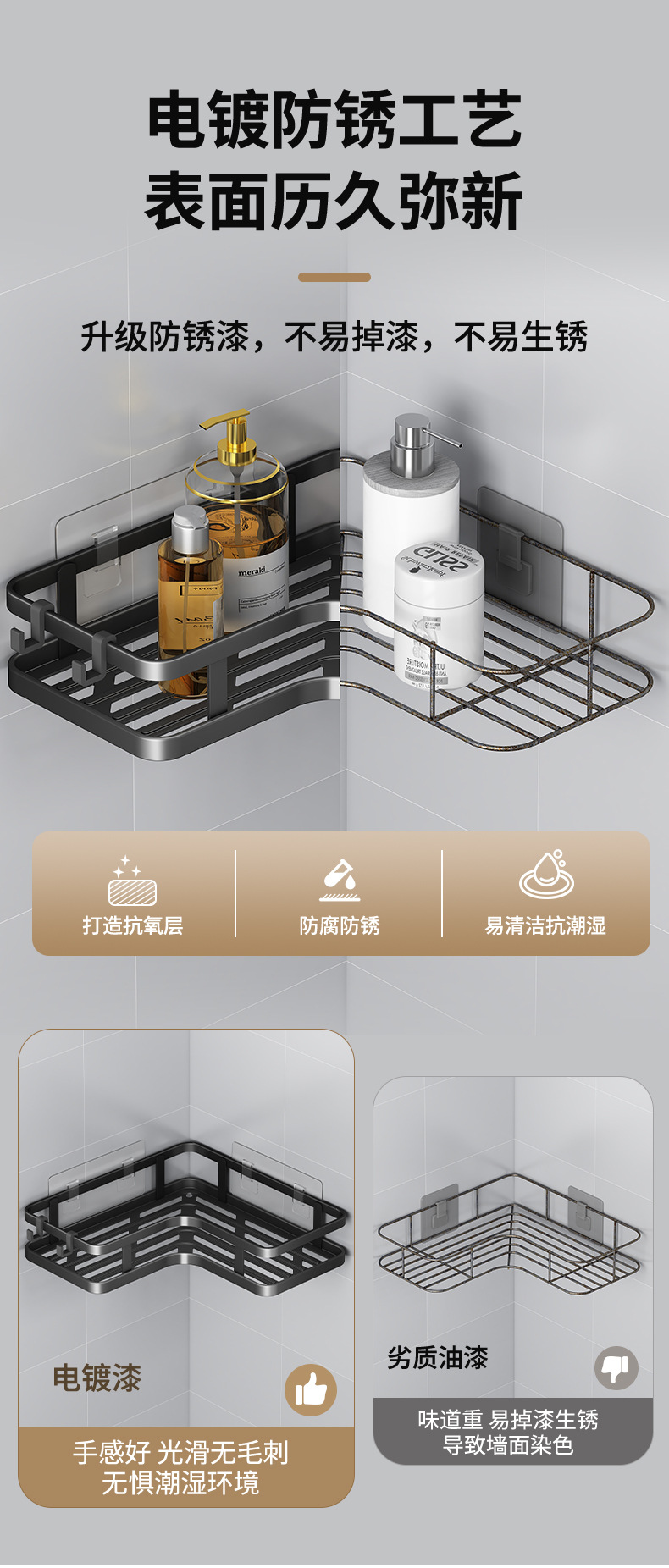 浴室三角置物架卫生间免打孔墙上收纳架阳台厕所厨房转角双层架子