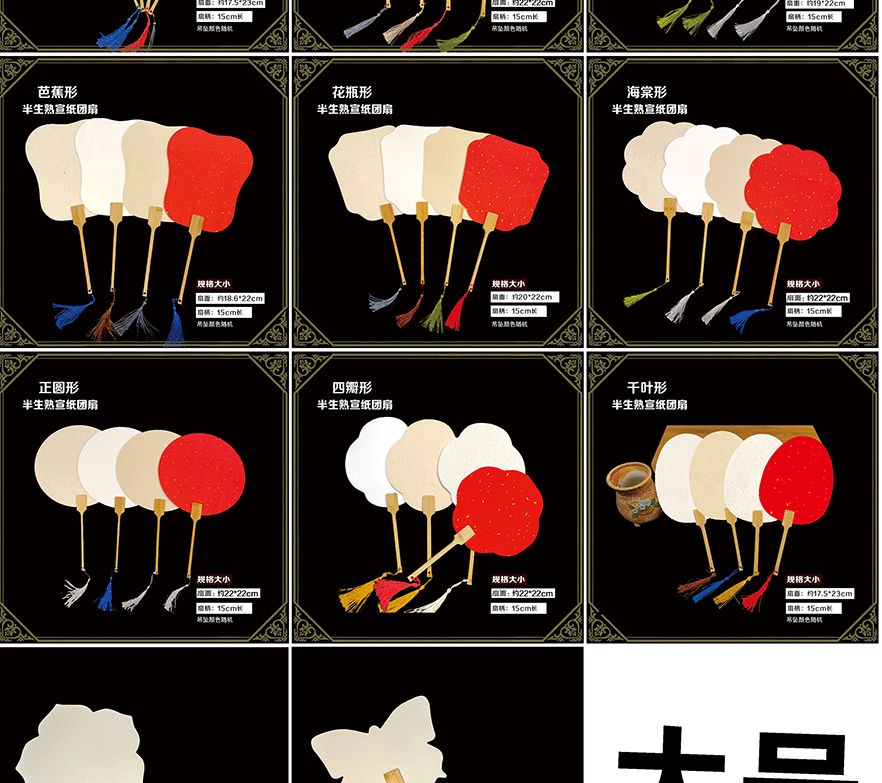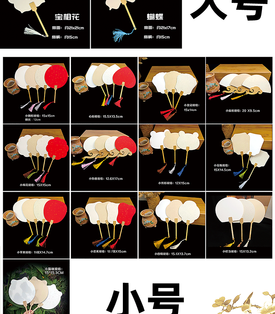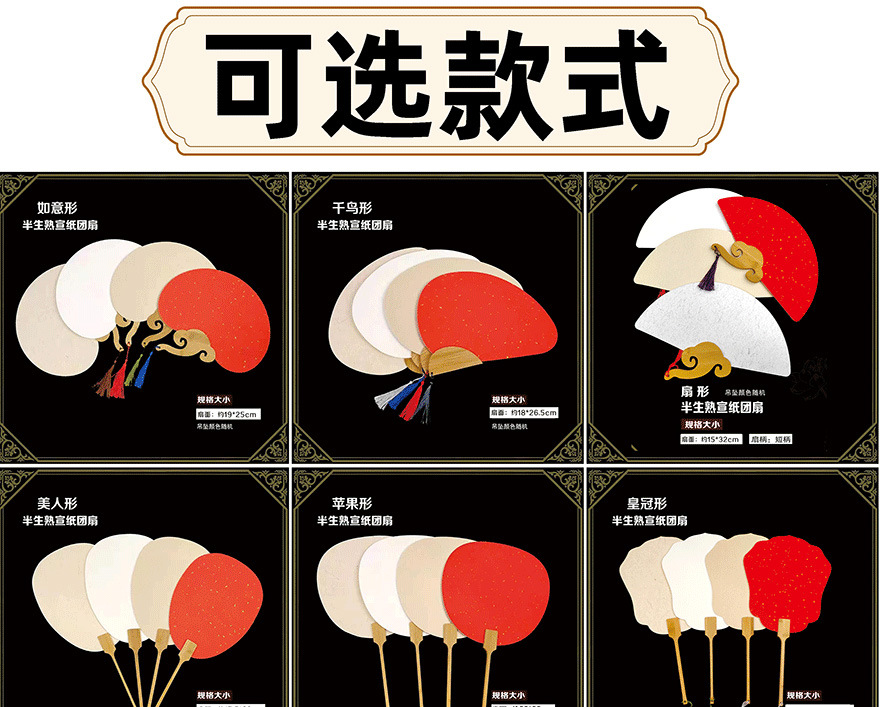 漆扇专用扇加厚空白宣纸卡纸团扇diy手工书画创作古风扇子定制