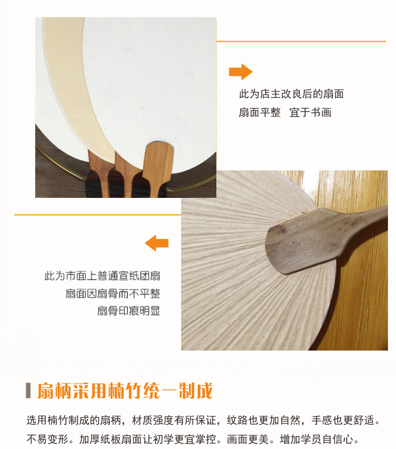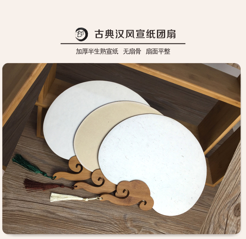 宣纸短柄团扇加厚古风扇子国画书法空白diy扇子装饰扇厂家批发