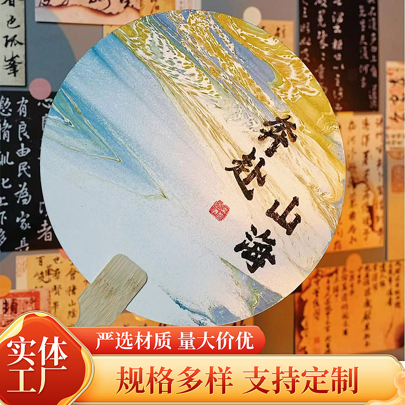 PVC漆扇团扇成品扇已上漆混发10把宣纸团扇带字带图古风团扇漆扇