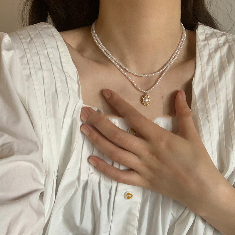 韩版巴洛克小众珍珠项链女百搭辣妹气质锁骨链设计感爱心吊坠饰品