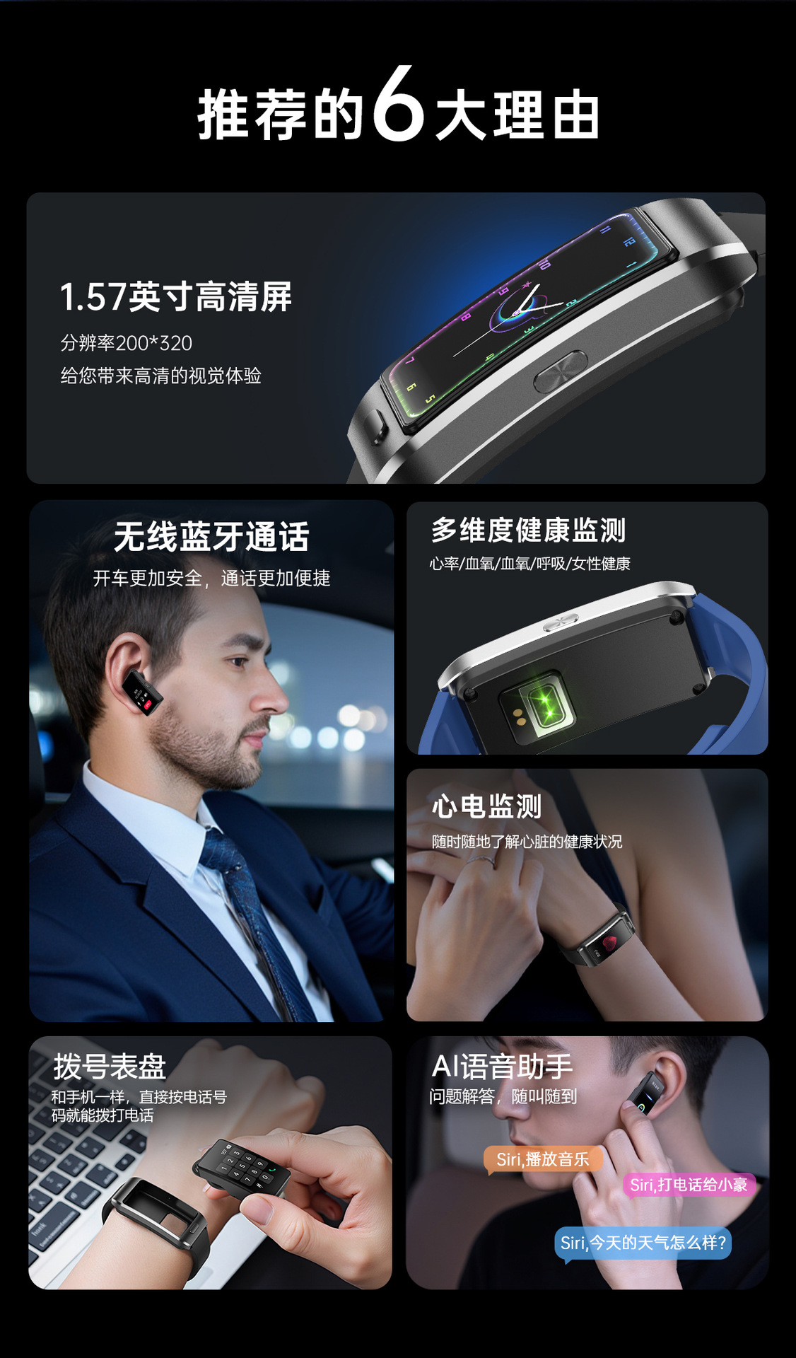 跨境电商Z15Max耳机智能手表二合一可拆卸健康监测计步运动手环B7