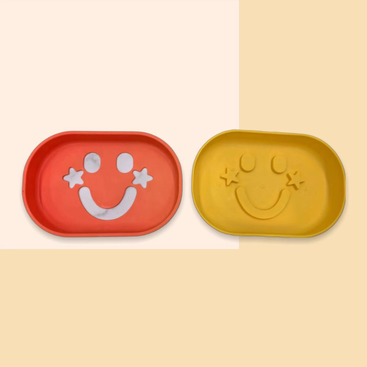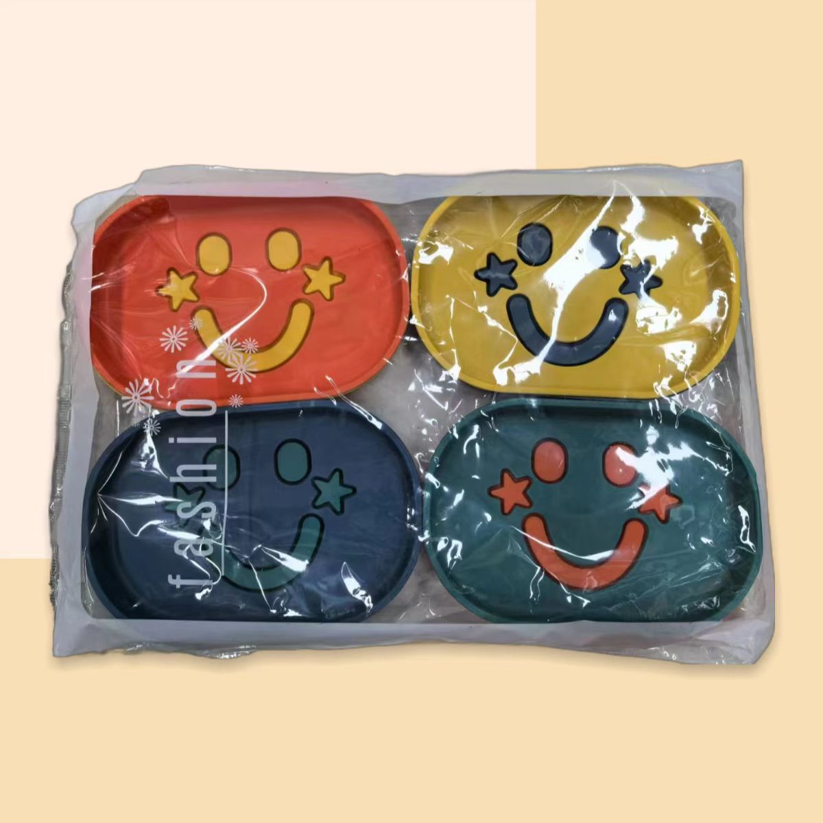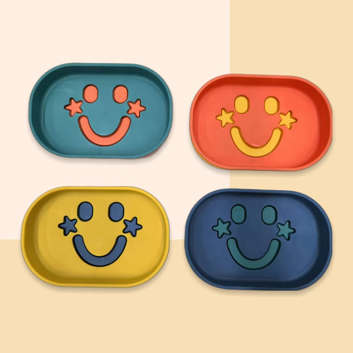 笑脸沥水皂盒 时尚简约双色分层笑脸皂盒透明PP防尘防水肥皂盒卡