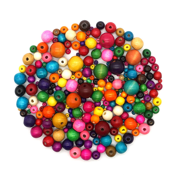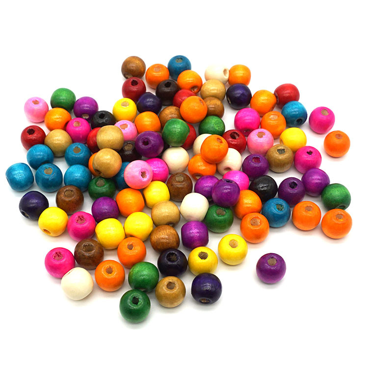 厂家直供diy彩色木珠散珠现货儿童串珠材料批发大孔小木珠 批发