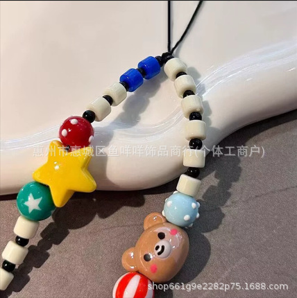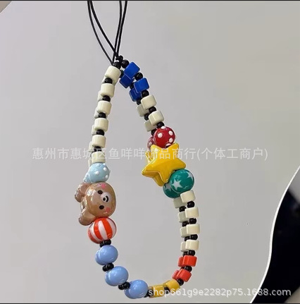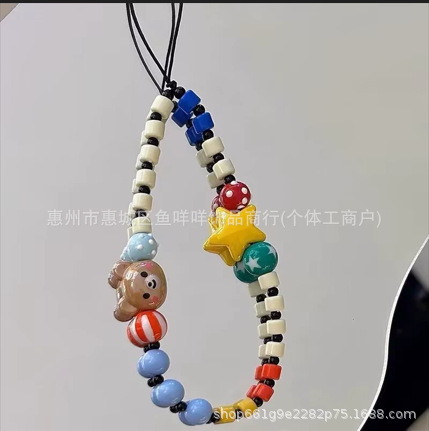 厂家批发 小红书同款手工串珠手机链可爱小熊童趣手腕短款链挂饰
